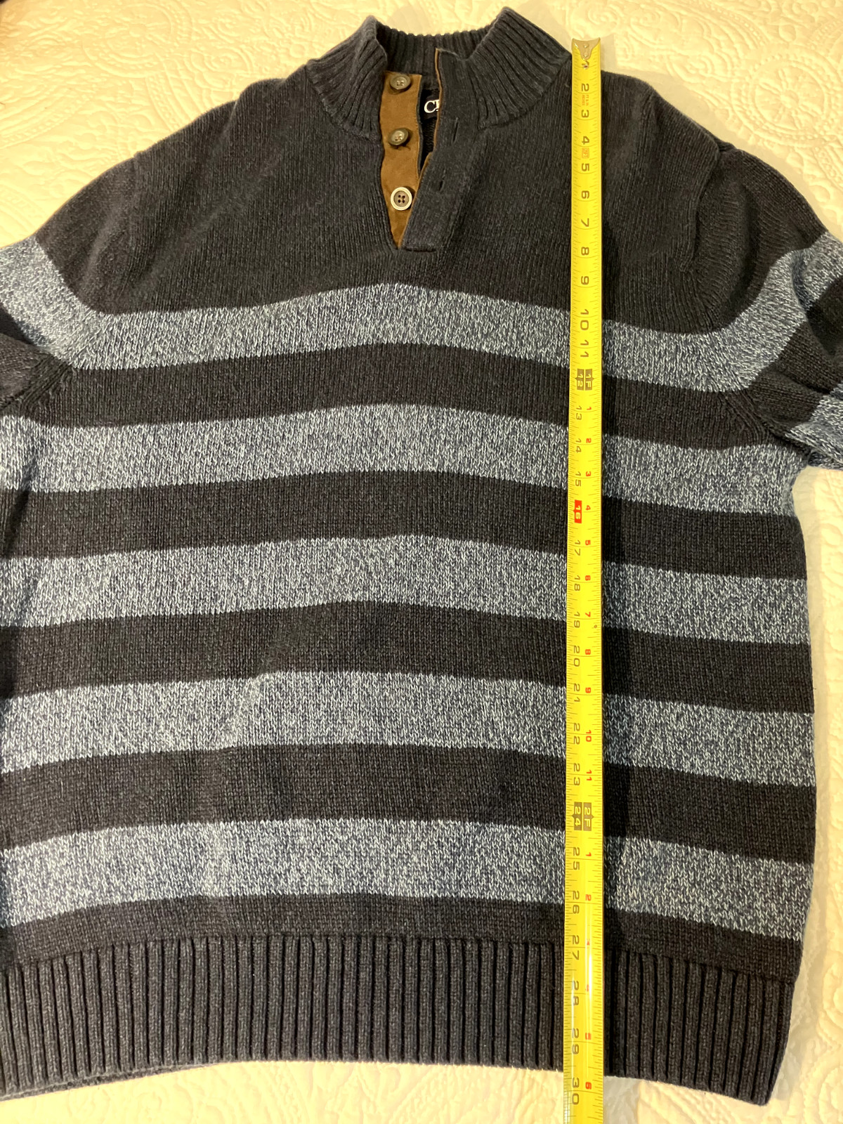 как выглядит Chaps Old Money Sweater Mens XXL Navy stripe Cotton Pullover Elbow Patches Soft фото