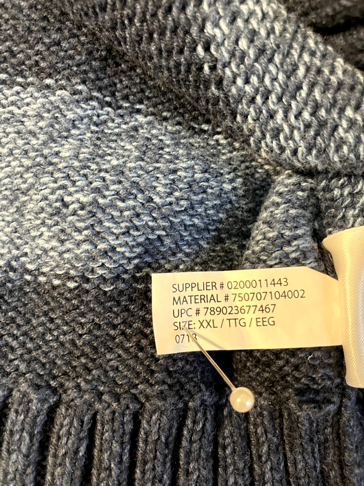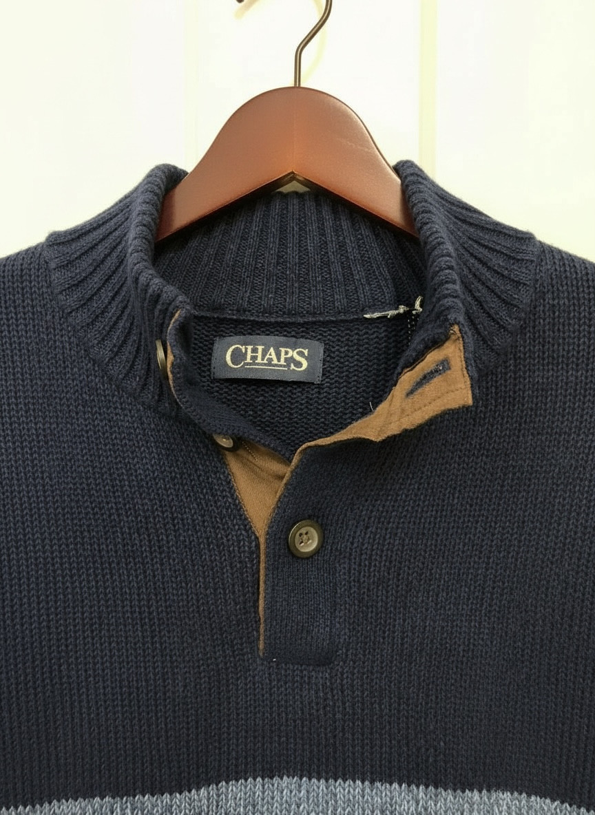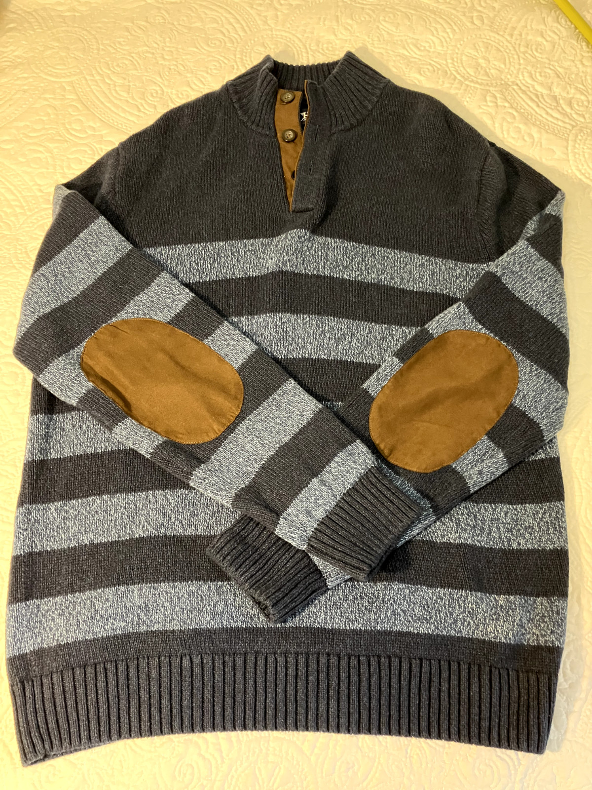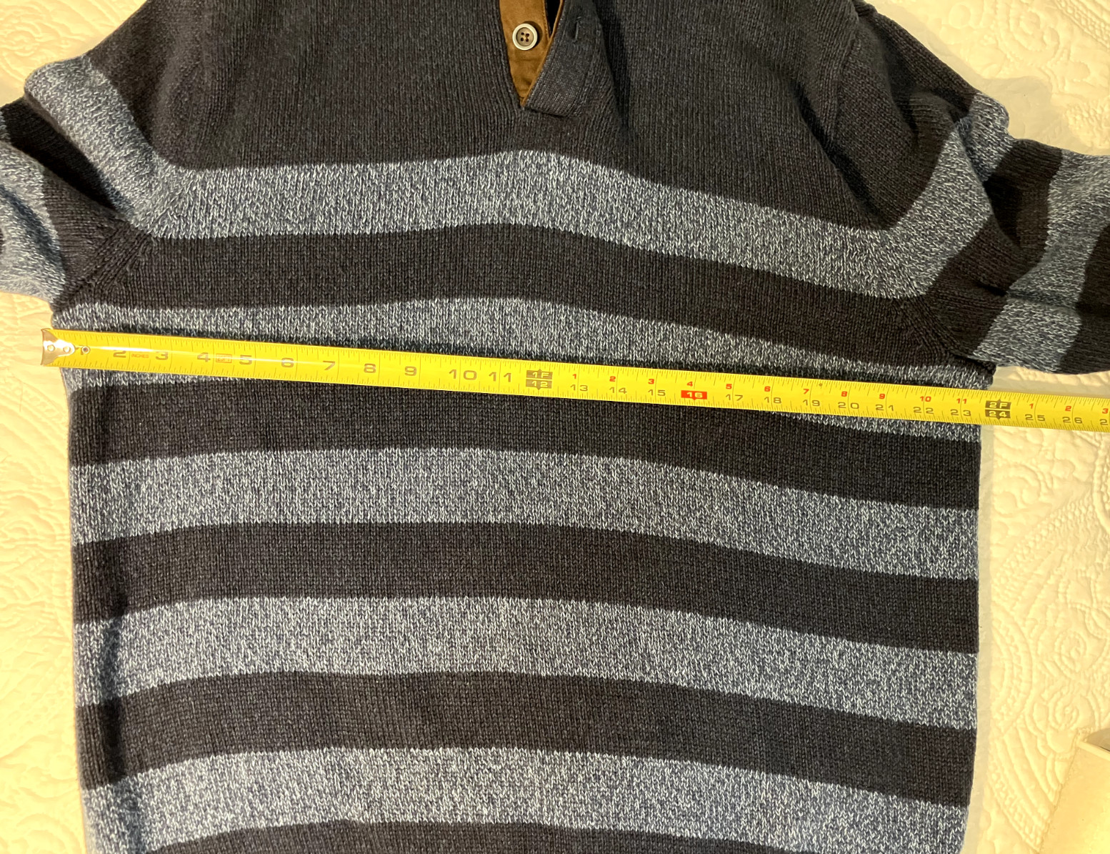 Chaps Old Money Sweater Men's XXL Navy stripe Cotton Pullover Elbow Patches Soft