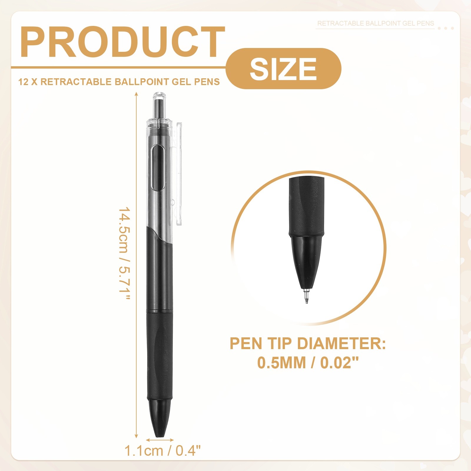 12 Pack Retractable Pens 0.5mm, Black Gel Ink Pens for Note Taking, Black