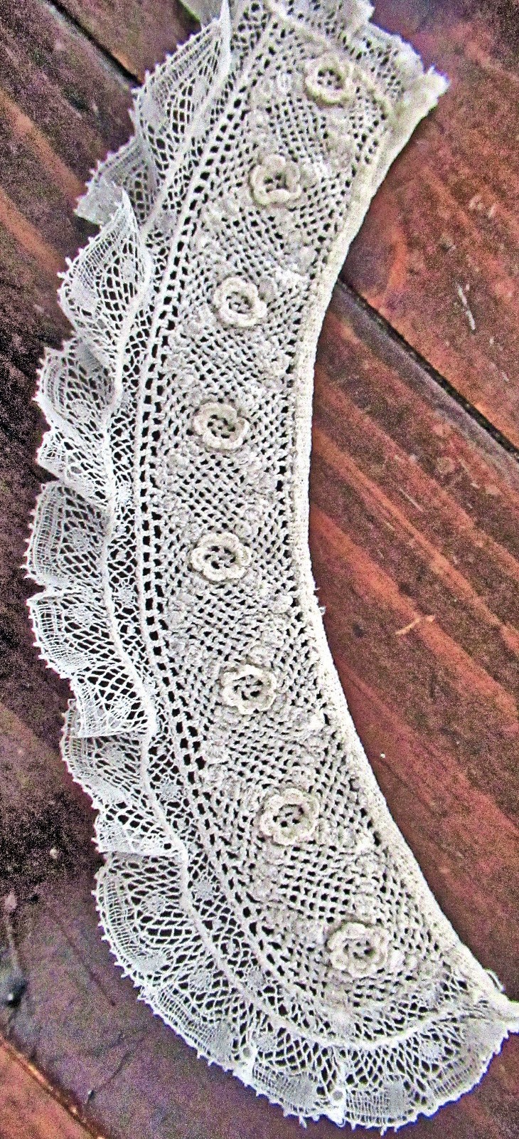 Vtg Lady's Dress Collar Ruffled French Handmade Irish Lace 3-D Flower-Petals