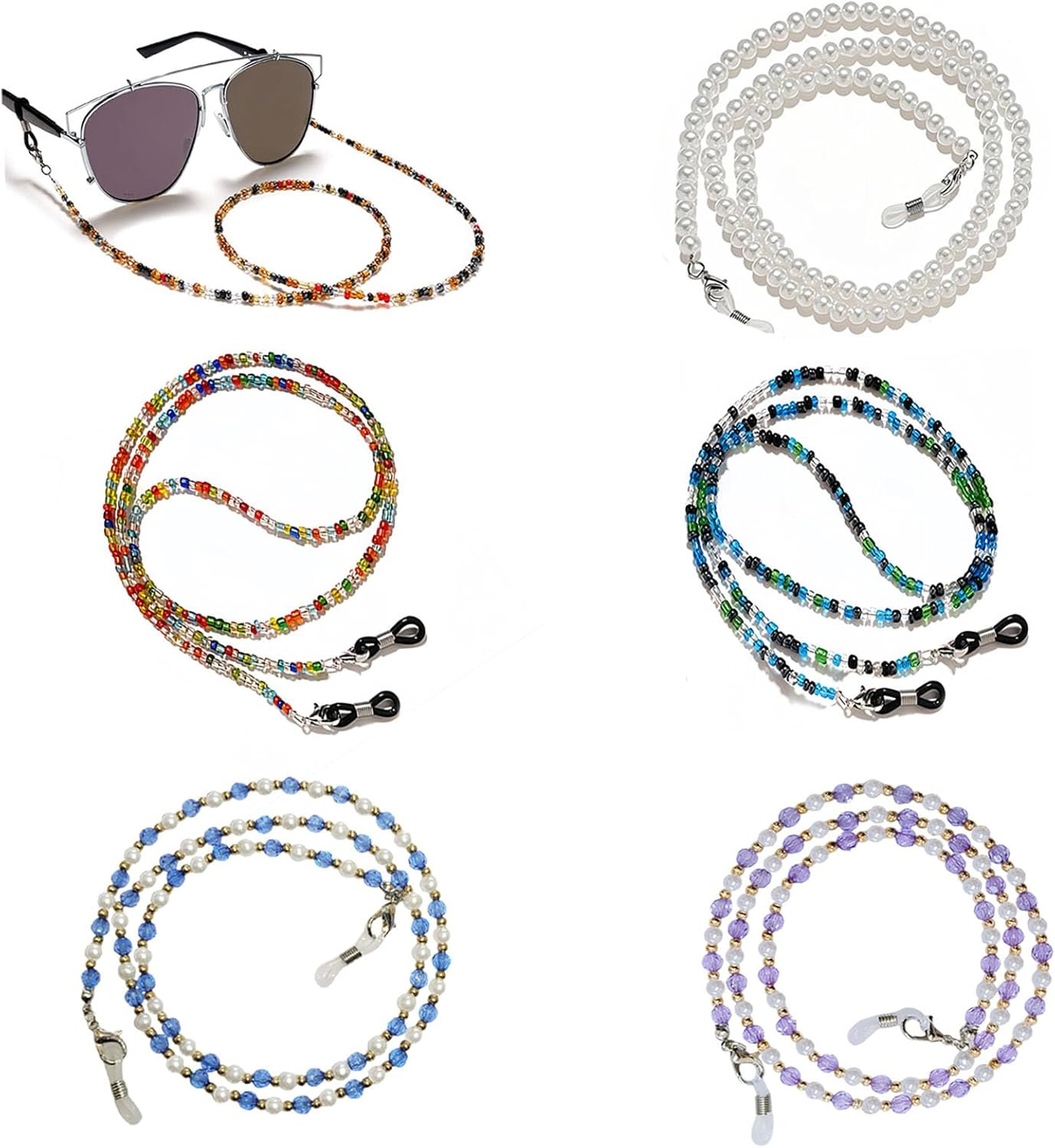 как выглядит 5 Pcs Glasses Chain 3 Cute Styles Beaded Pearl Eyeglass Chain Eyeglass Necklace фото