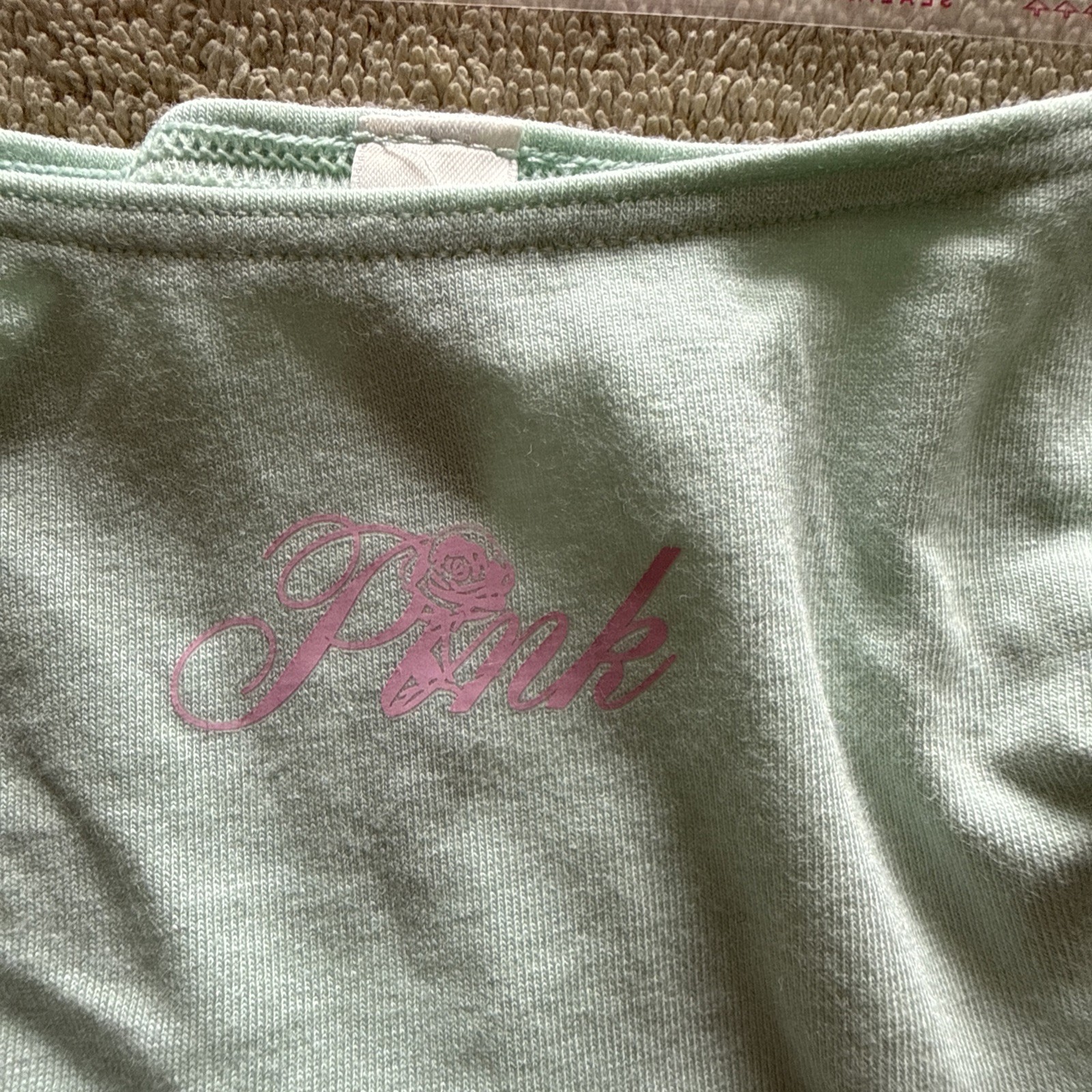 как выглядит Pink By Victoria s Secret Small, Mint Green Logo Thong Panties фото