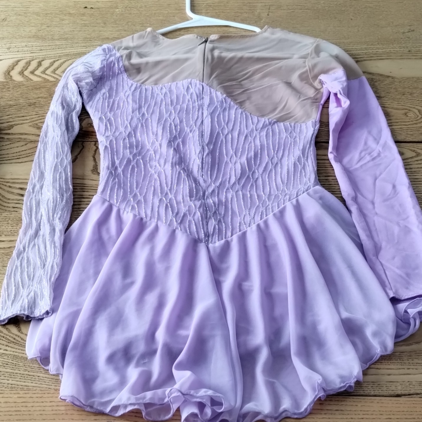 как выглядит Girls Purple Long Sleeve Figure Skating Dress with Sheer Mesh Tutu Skirt фото