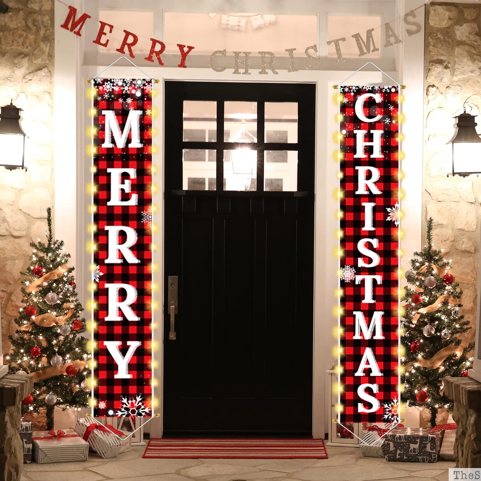 Ivenf Christmas Decorations Outdoor Yard, Outside Front Porch Sign Red Black