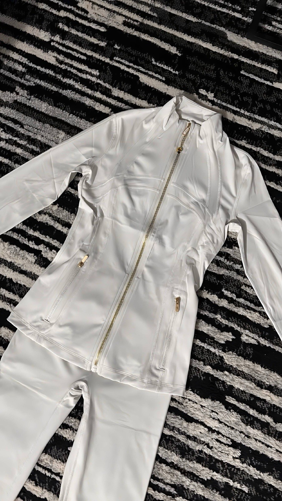 Women's Solid White lululemon Set Track Jacket Pants Zip High Neck Pockets