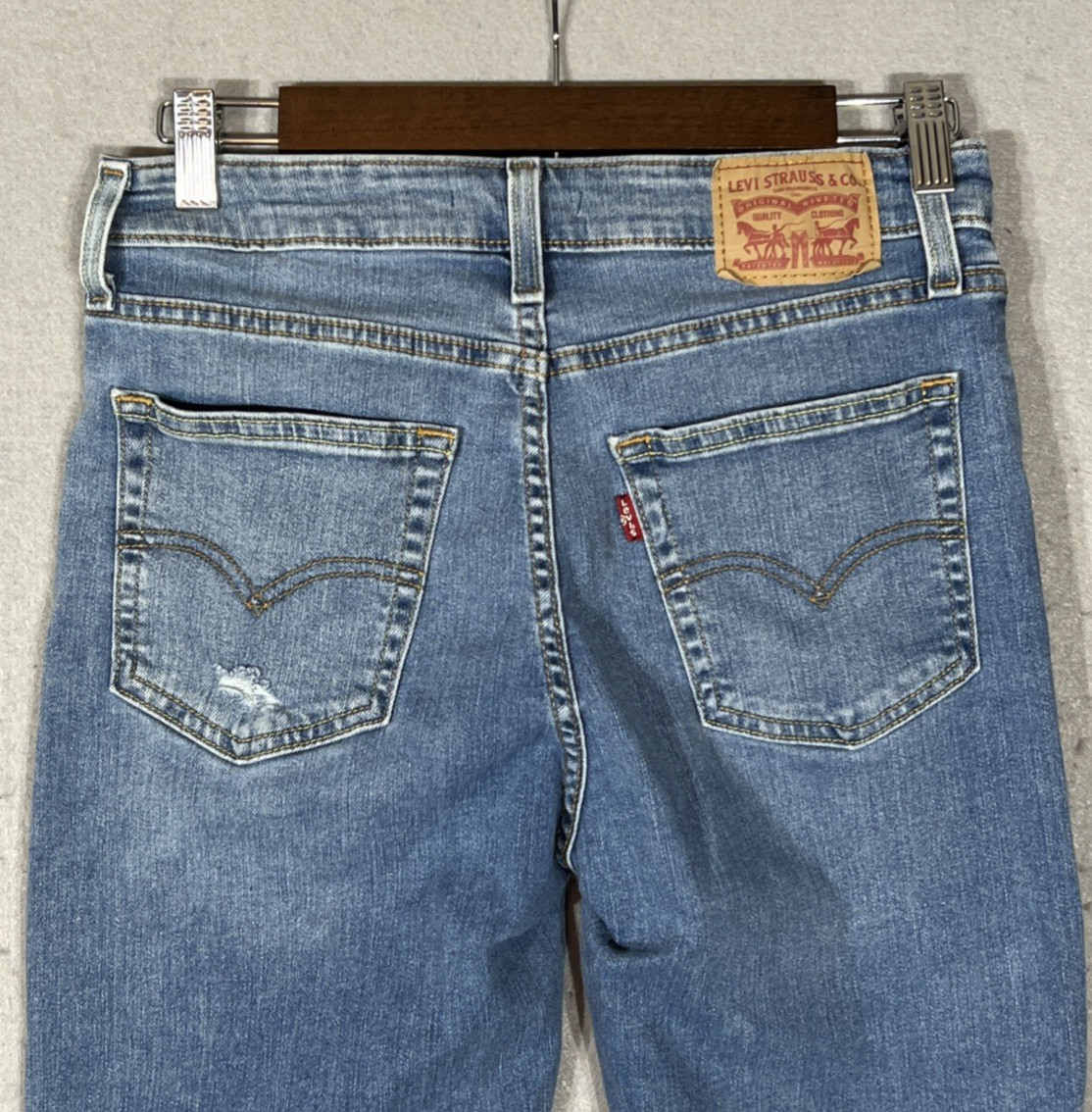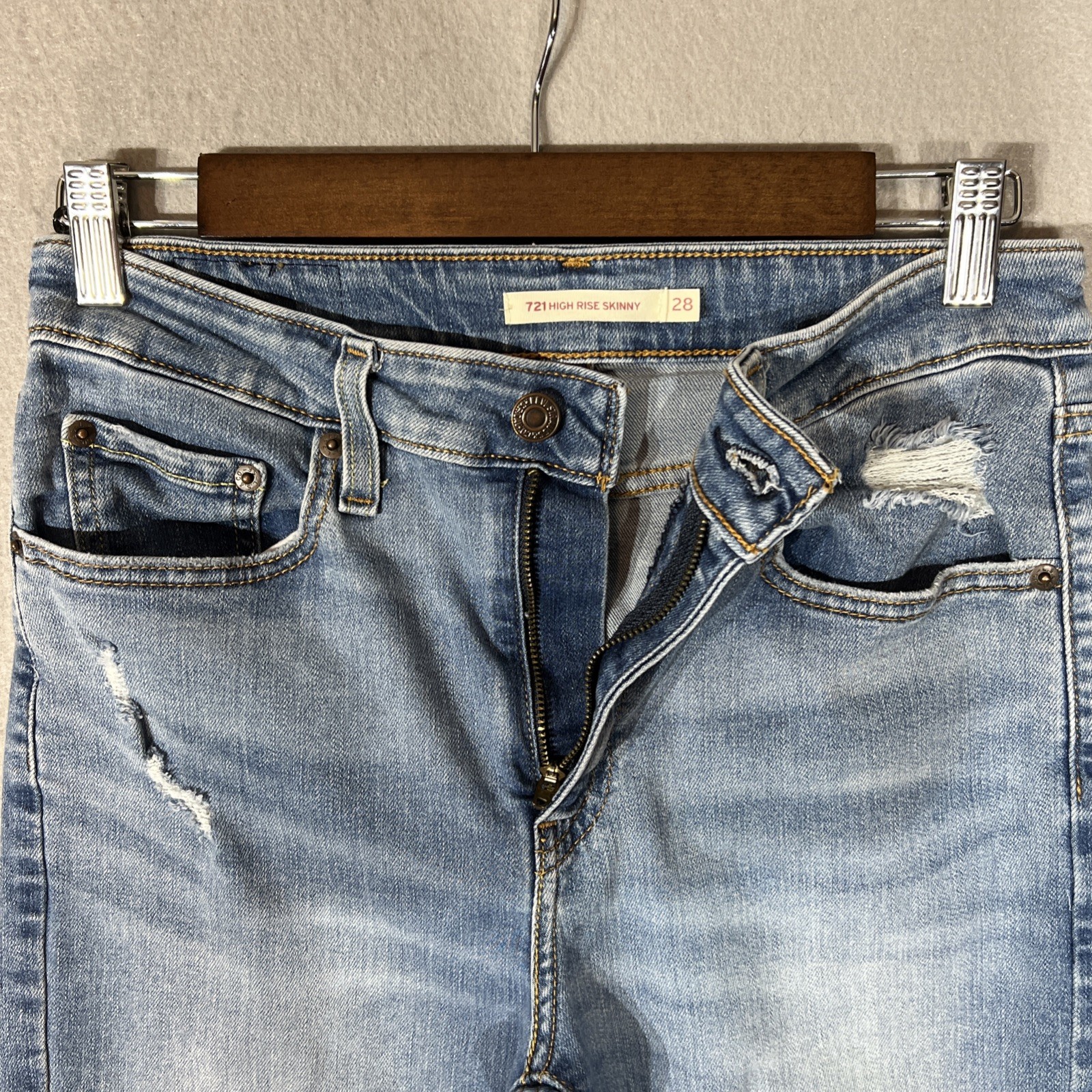 как выглядит Levis Womens 721 High Rise Skinny Leg Tailored Distressed Jeans Size 28 W28 фото