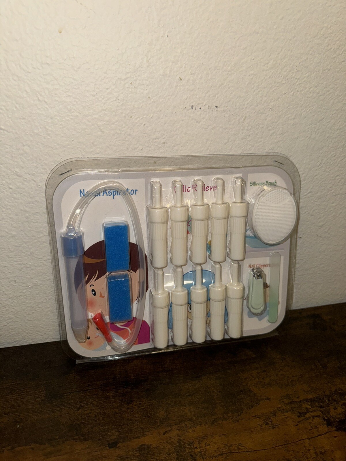как выглядит BABY NASAL ASPIRATOR, GAS PASSER, SILICONE BRUSH, NAIL CLIPPERS SET Box 15 фото