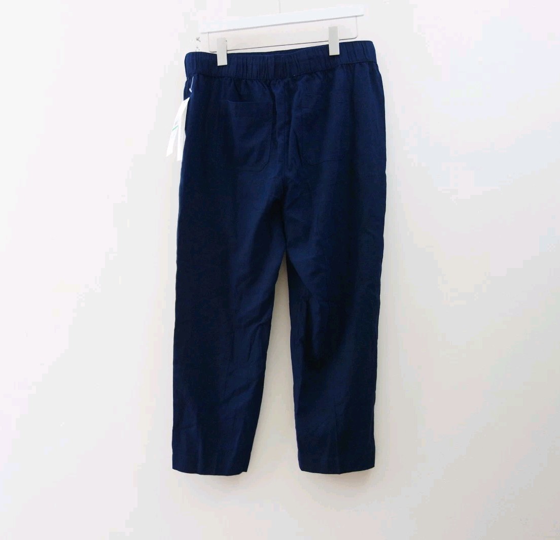 как выглядит Calvin Klein High Rise Linen Blend Navy Straight Leg Ankle Pants L NWT фото