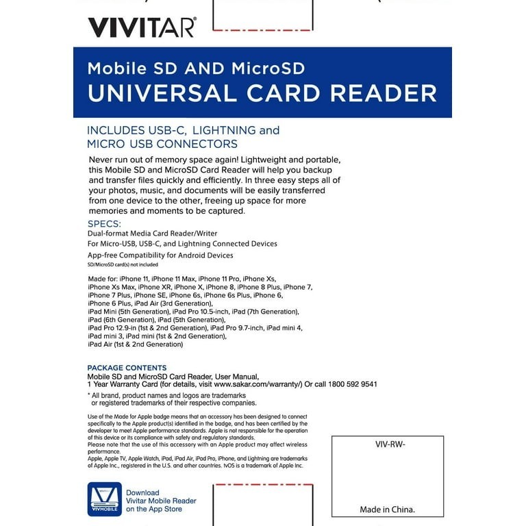 Vivitar Mobile Micro SD Compact Flash Card Reader with USB Adapter Universal