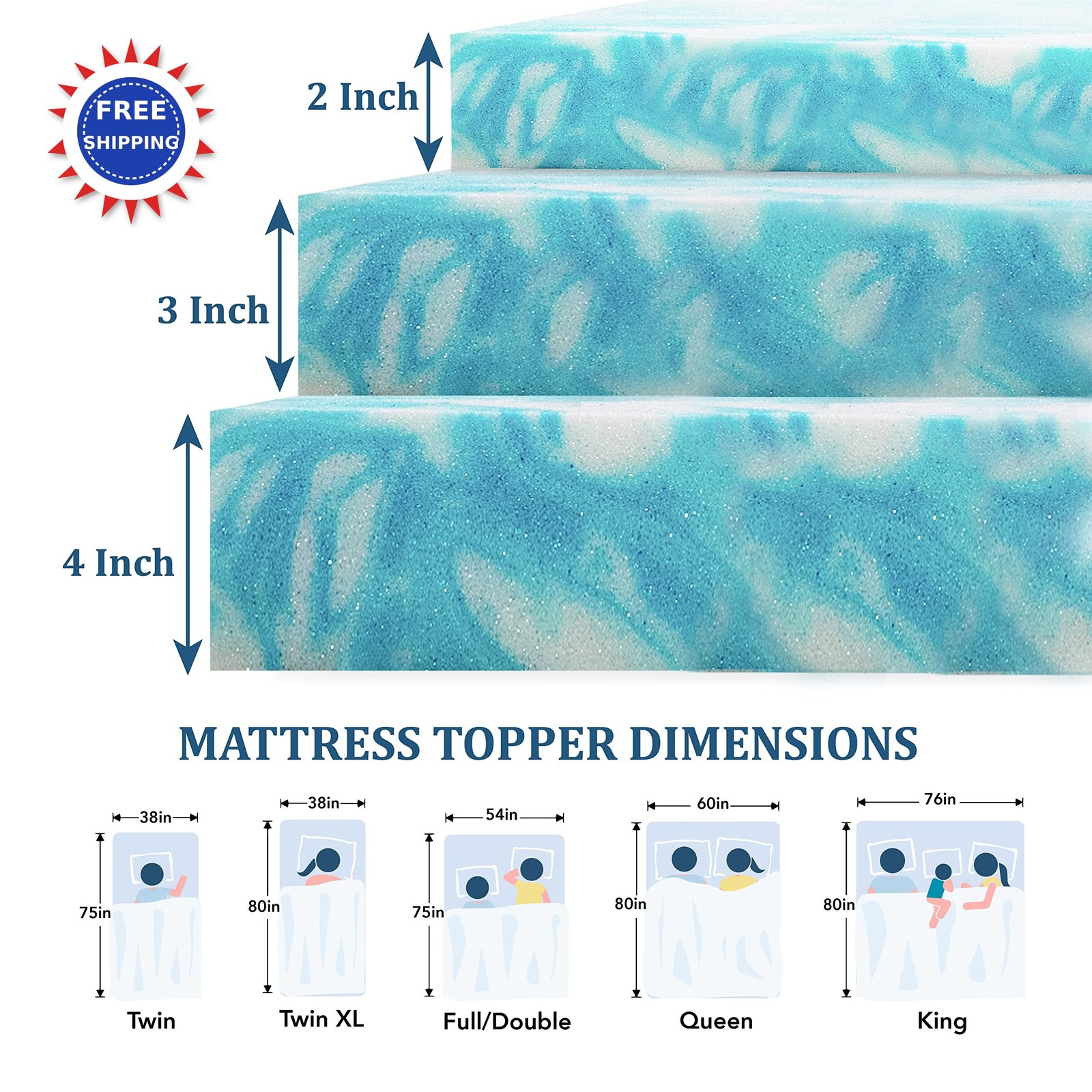 Memory Foam Mattress Topper 3 Inch Twin XL Cooling Gel CertiPUR US Pressure