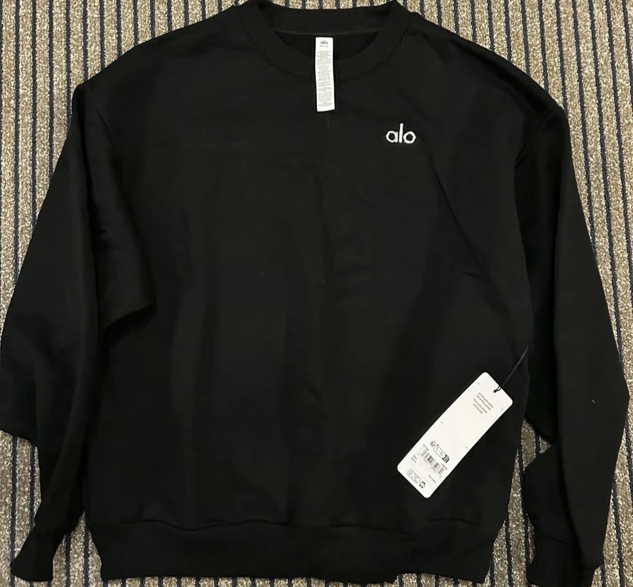 как выглядит alo yoga accolade crew neck pullover black size small brand new фото