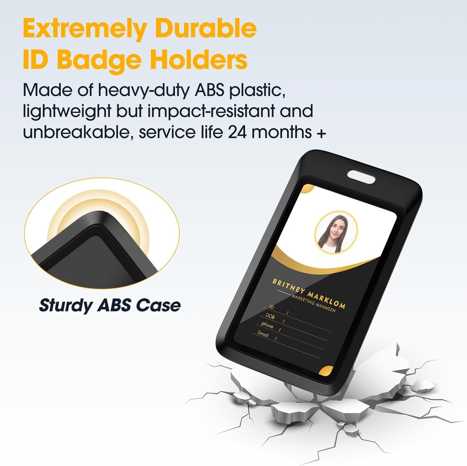 4 Pack Vertical Black ID Badge Holders Hard Plastic Key Card Protector Case