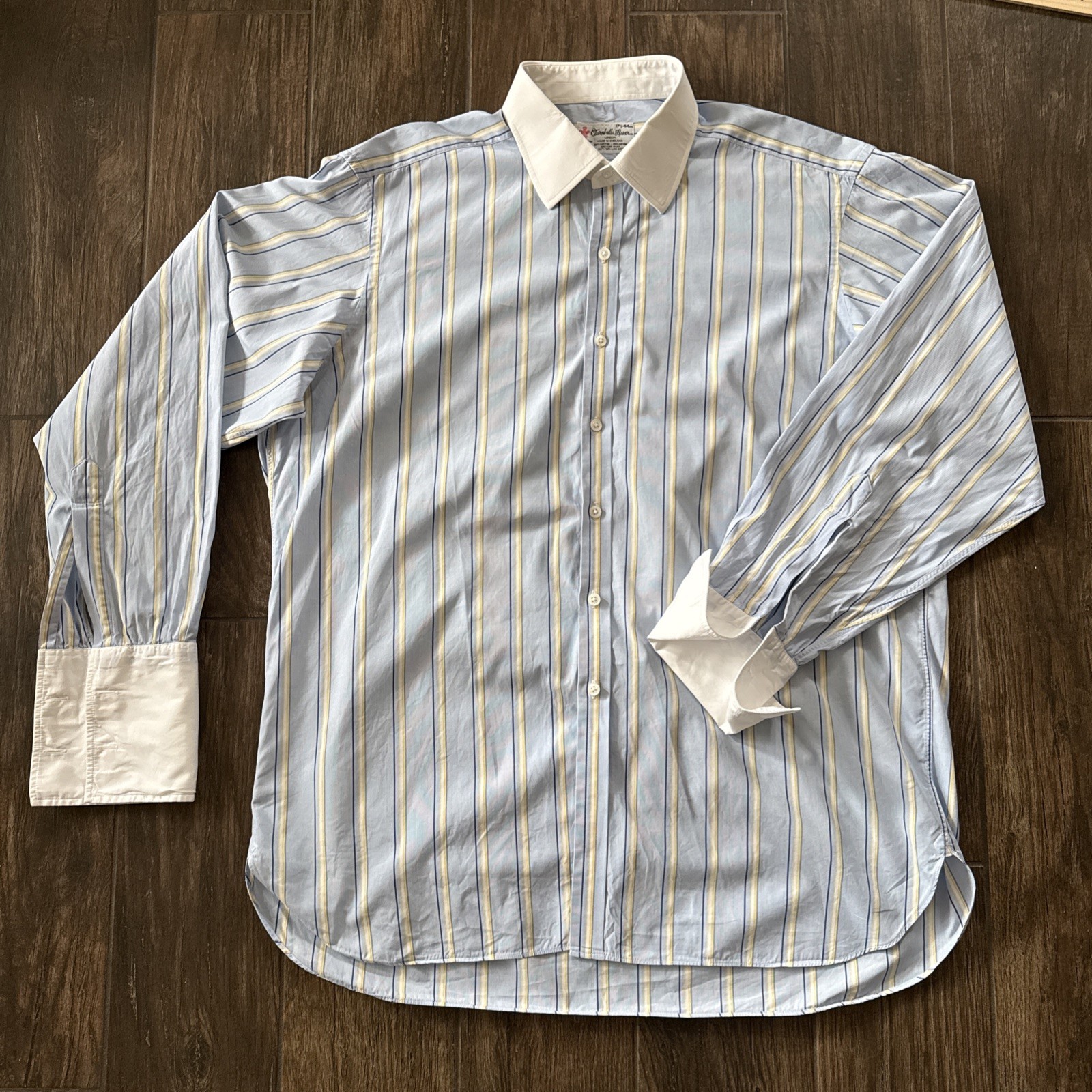как выглядит Turnbull Asser Dress Shirt Mens 17.5 44 French Cuff Blue Made In England фото