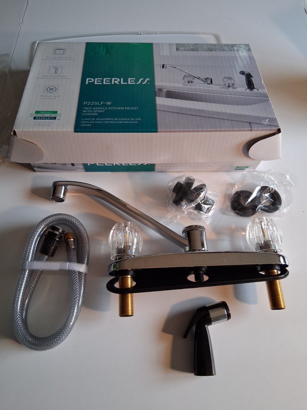 Peerless P225LF-W Two Handle High Arc Kitchen Faucet Chrome with Side Spray