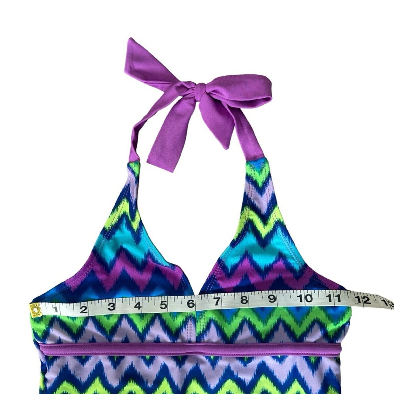 как выглядит Justice Swim Tops 2 Tankini Ruffle Tie Dye Geometric Neck Tie Girls Size 8 фото