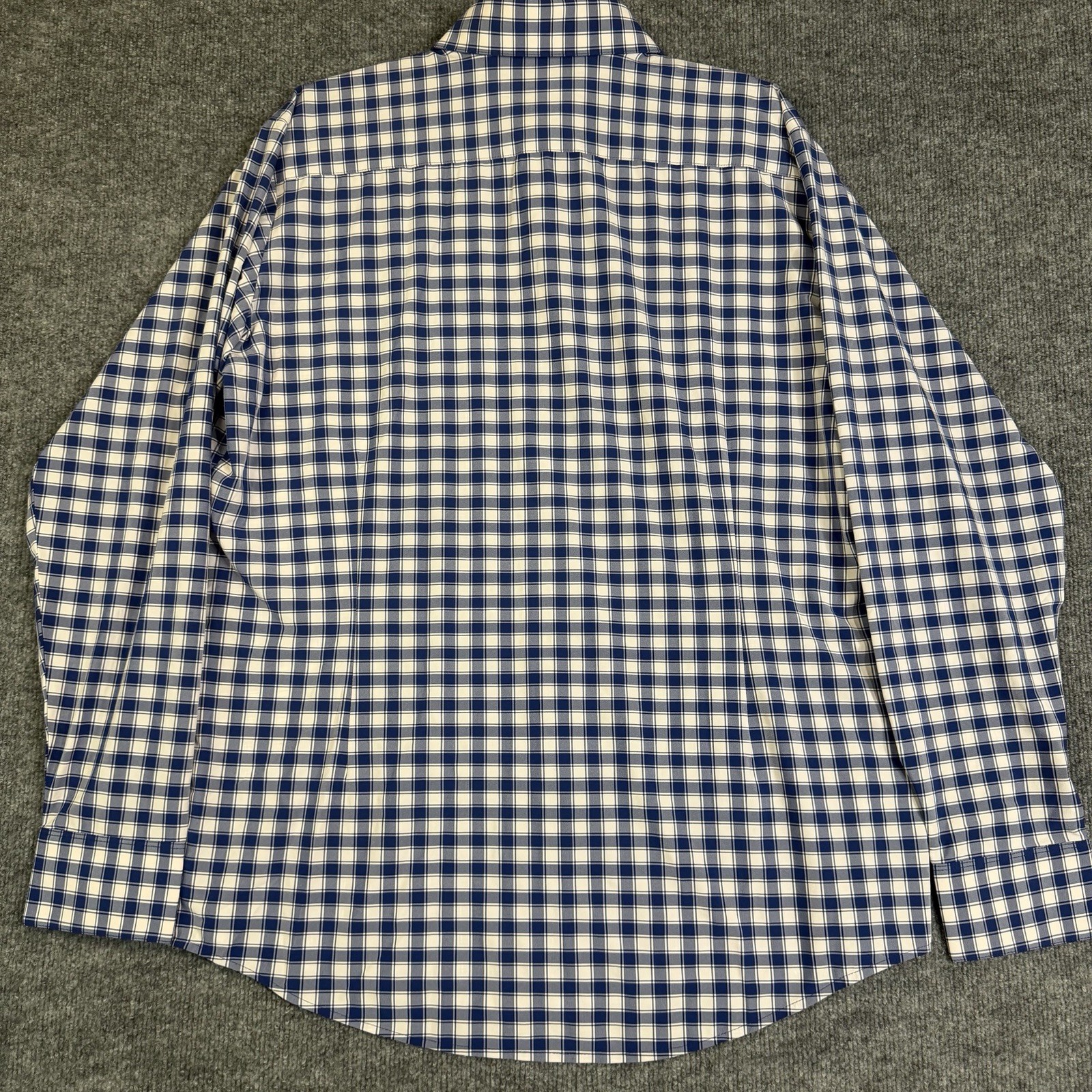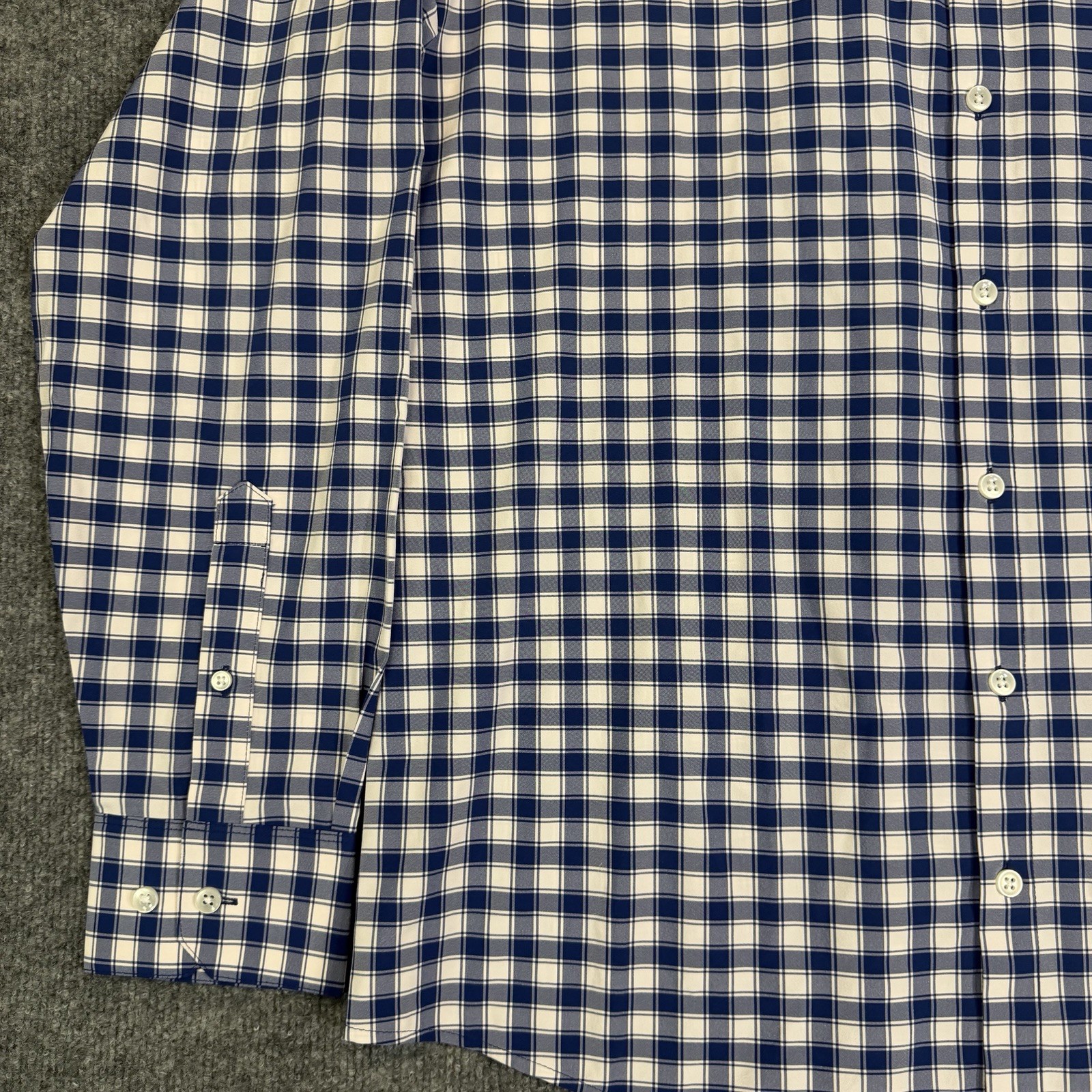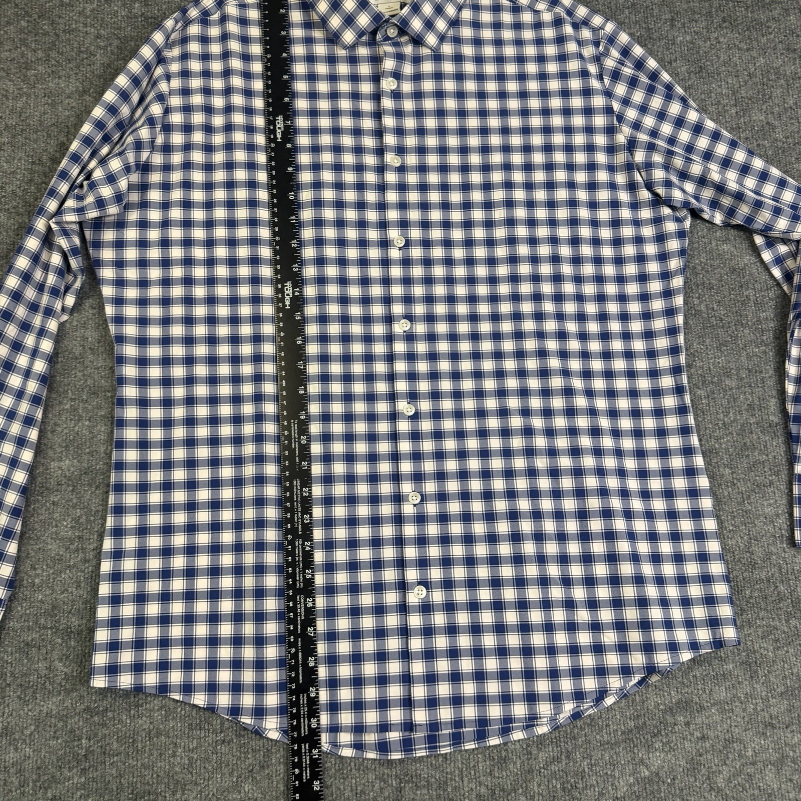 как выглядит Mizzen Main Dress Shirt Mens Large Blue Plaid Performance Stretch Classic Check фото