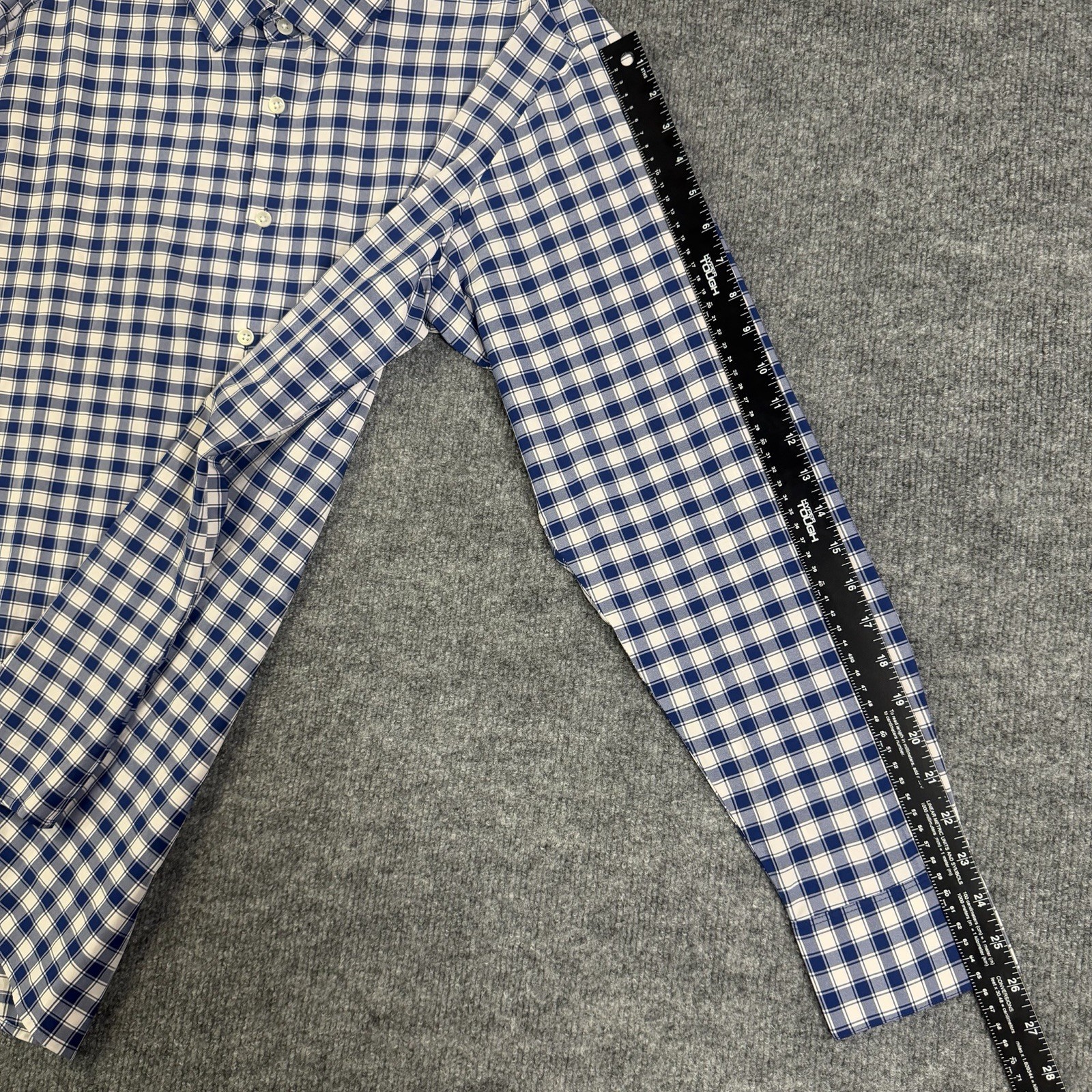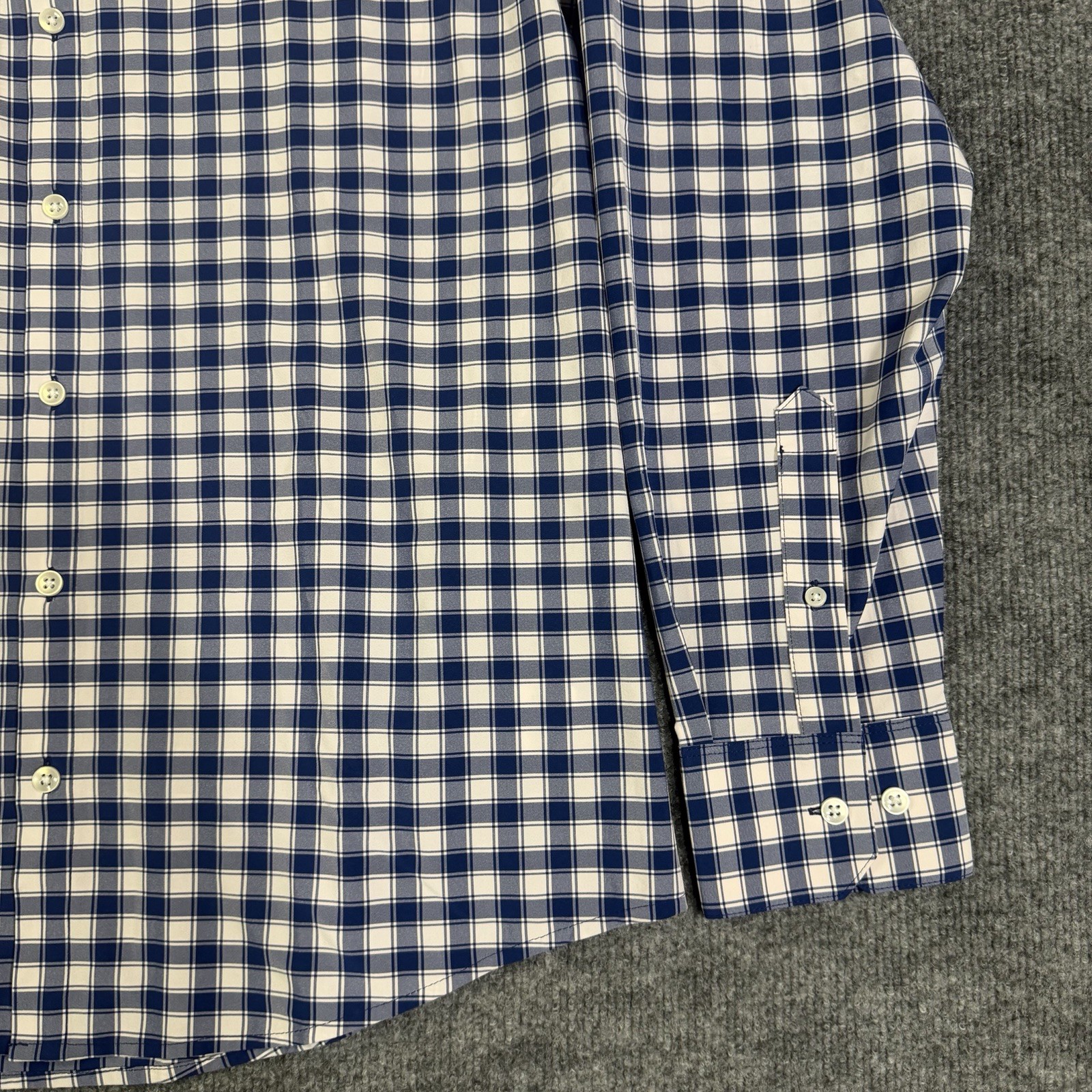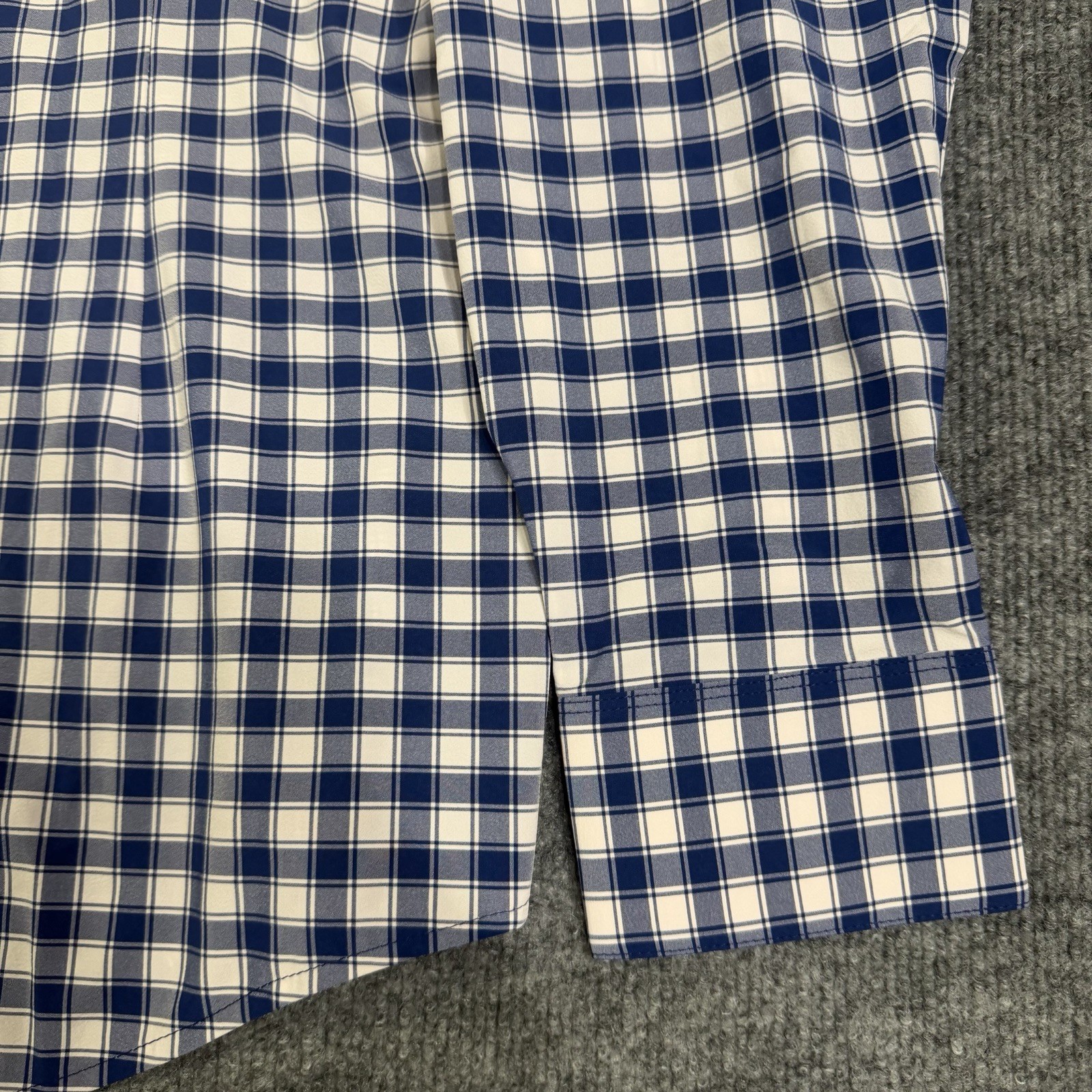 как выглядит Mizzen Main Dress Shirt Mens Large Blue Plaid Performance Stretch Classic Check фото