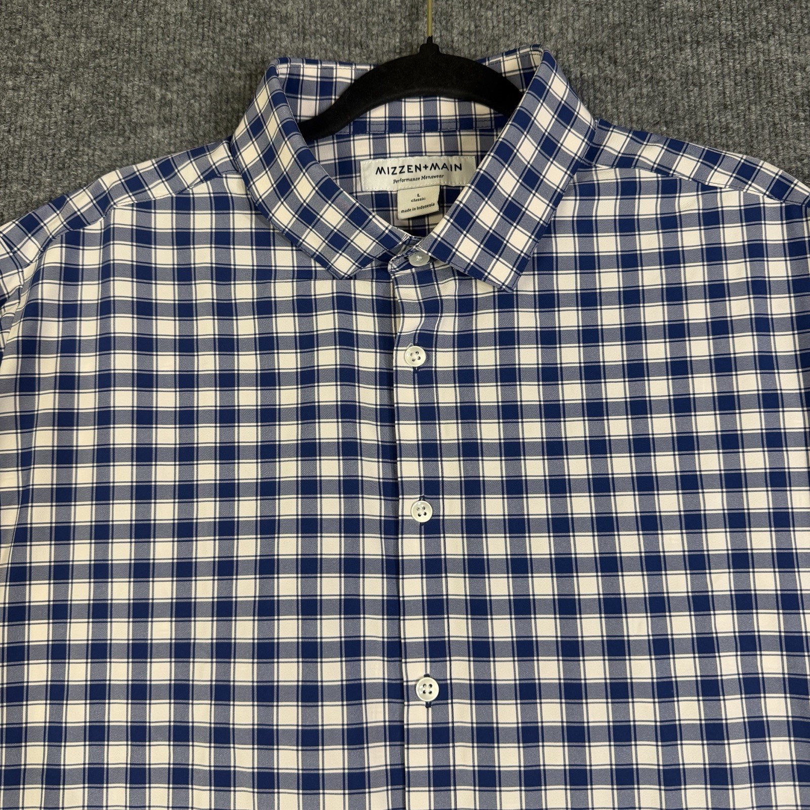 Mizzen Main Dress Shirt Mens Large Blue Plaid Performance Stretch Classic Check