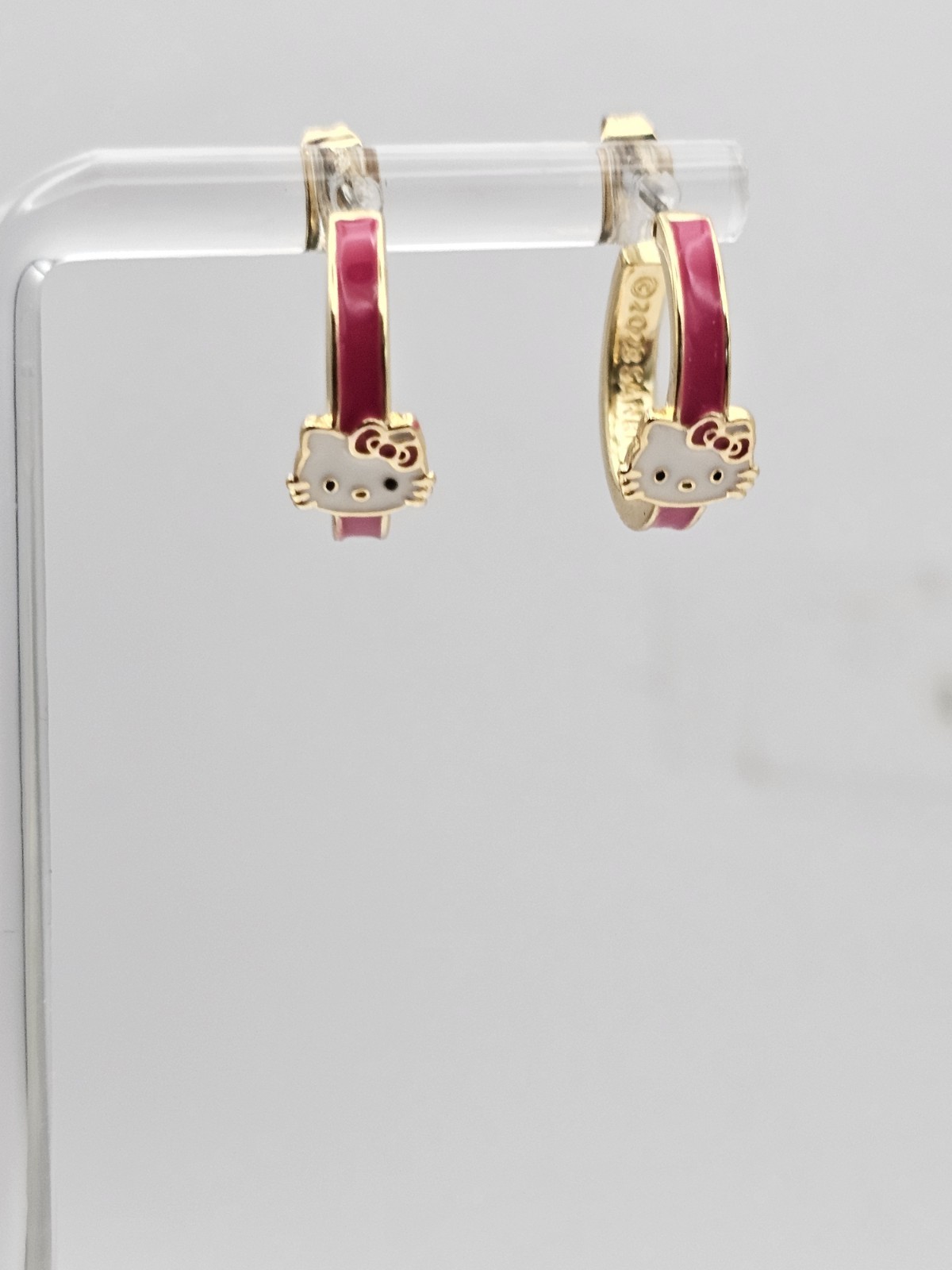 New in Box Hello Kitty Pink Enamel Gold Flash Plated Small Hoop Earrings