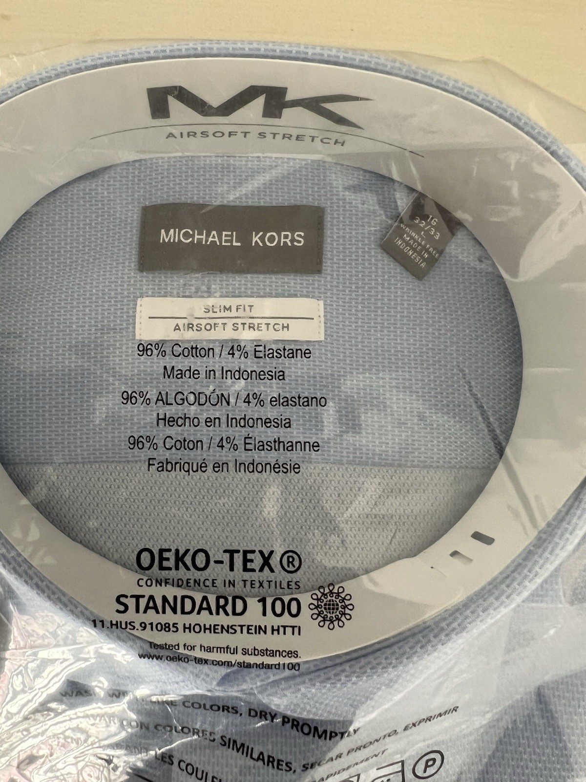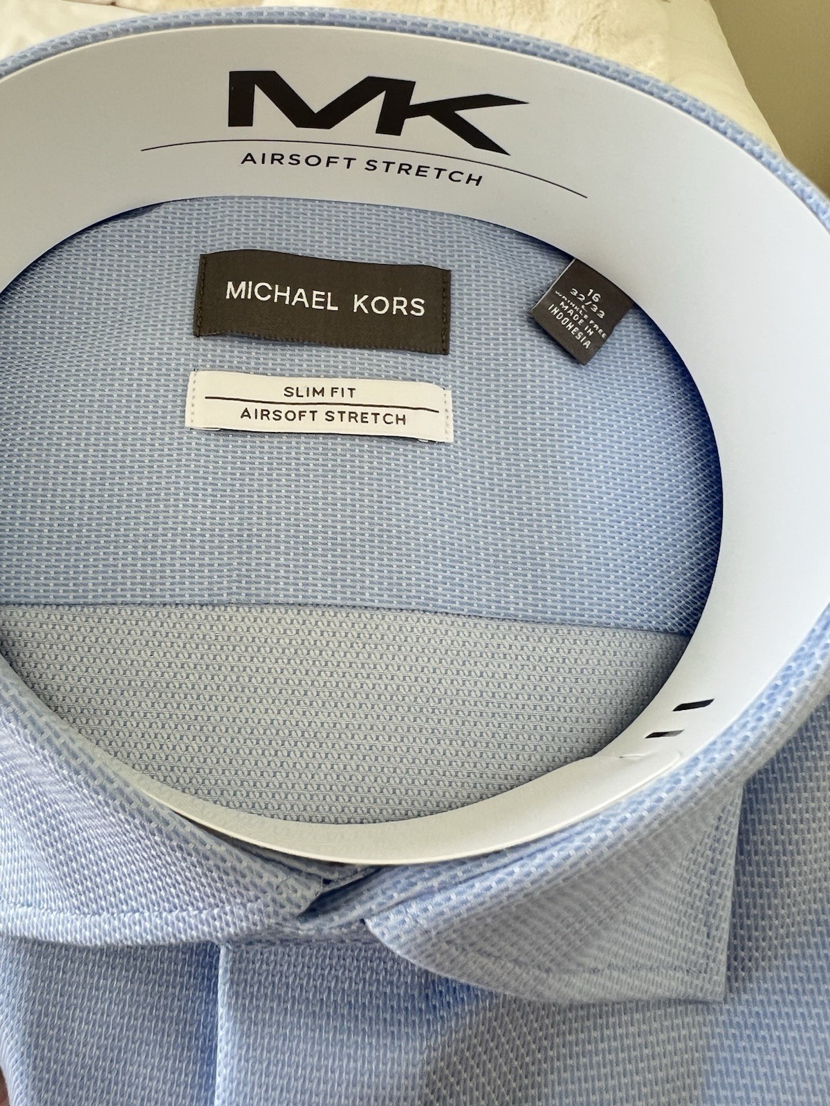 как выглядит Michael Kors Mens Slim Fit Airsoft Stretch Dress Shirt-Powder Blue, L 16 32-33 фото