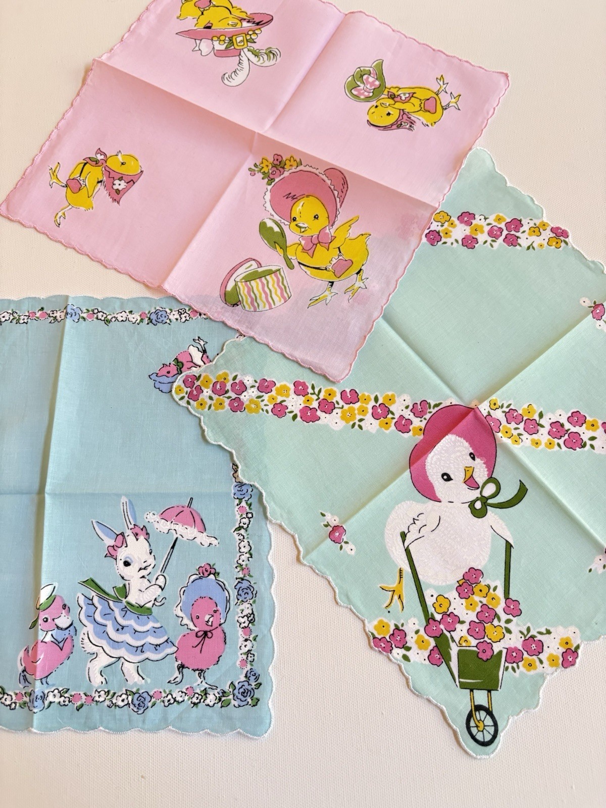 Set /3 NEW Spring Easter Bunny Handkerchiefs LuRay Hankies Special Price