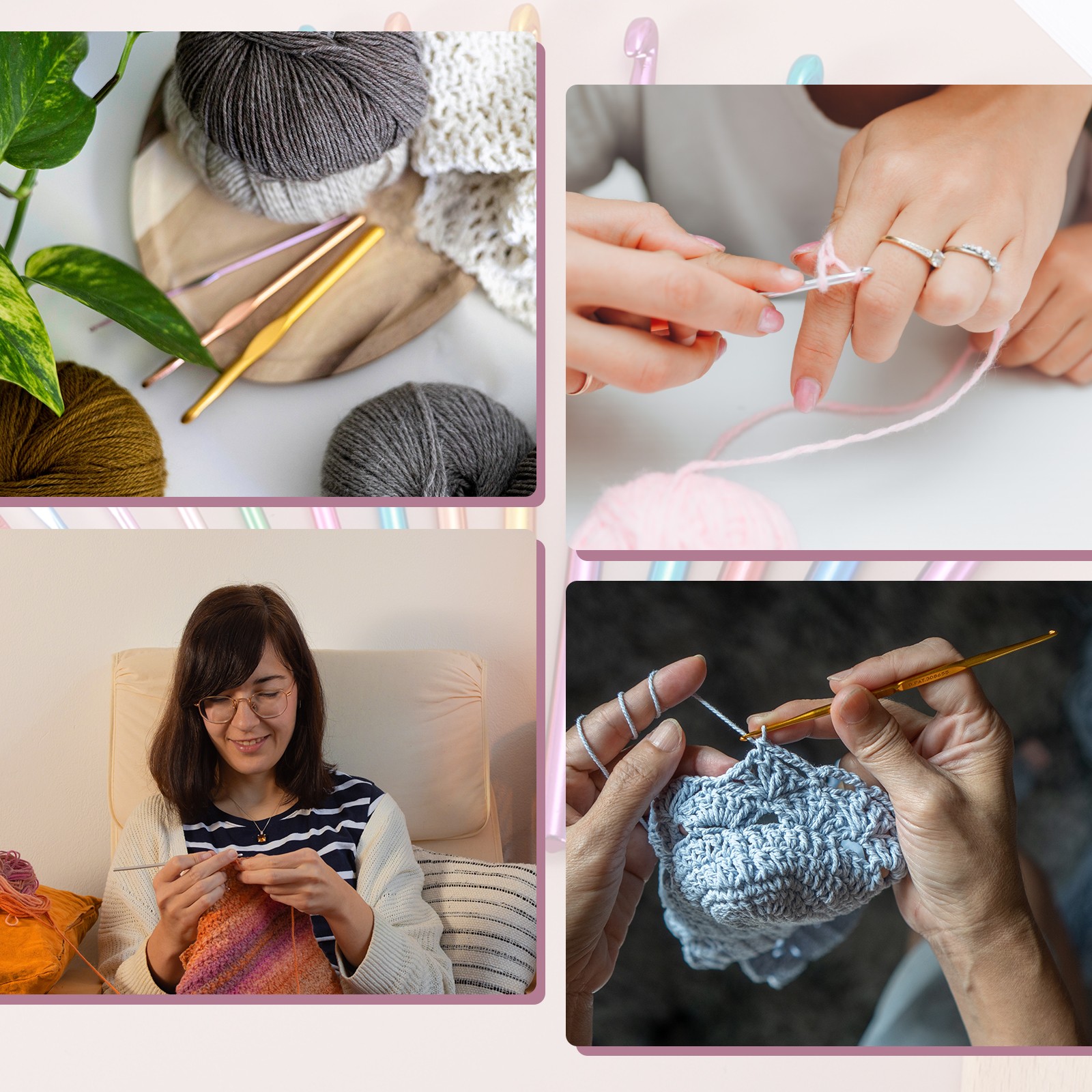 Crochet Hook Set, 14Pcs 3.5mm Aluminum Ergonomic Crochet Needle Light Pink