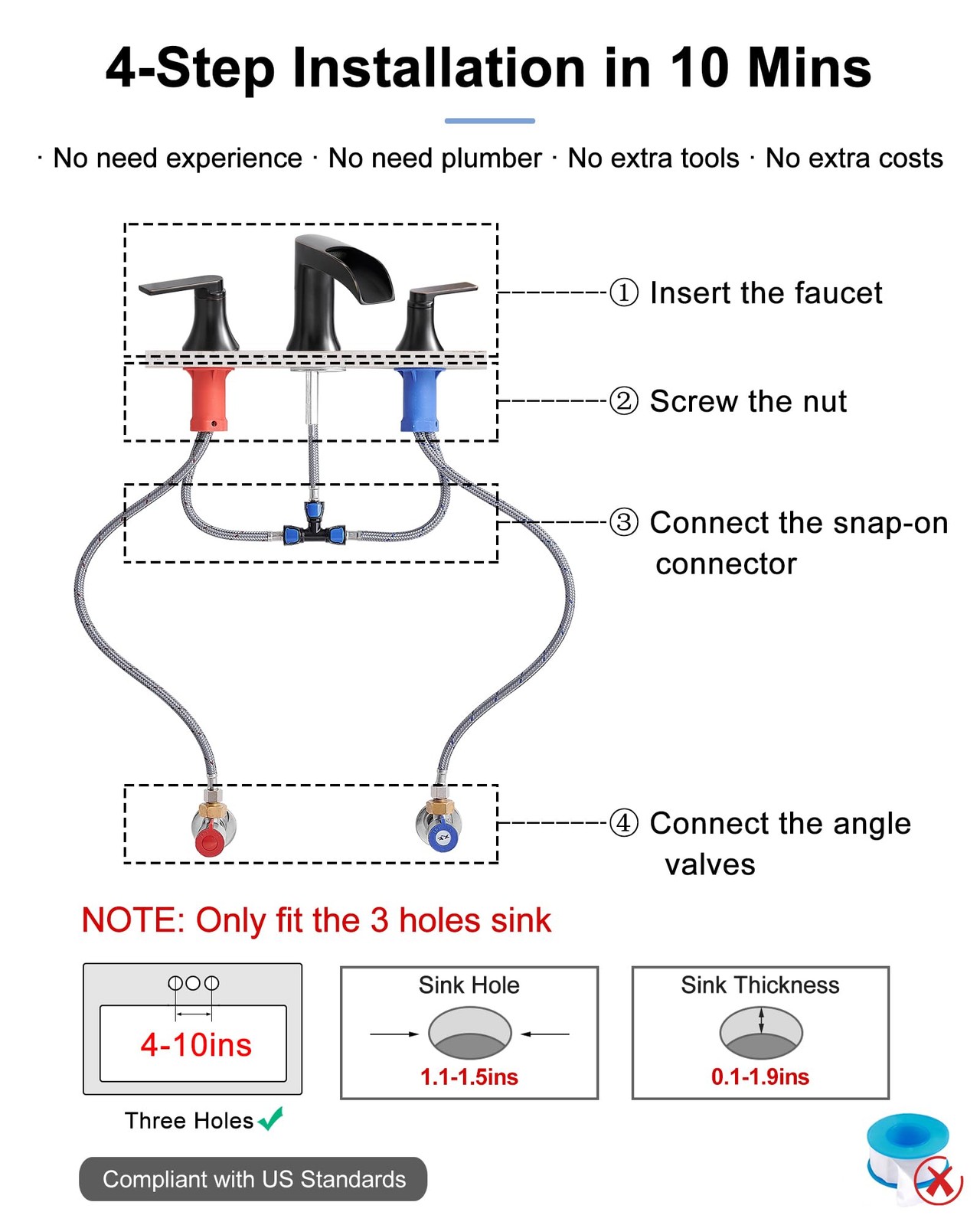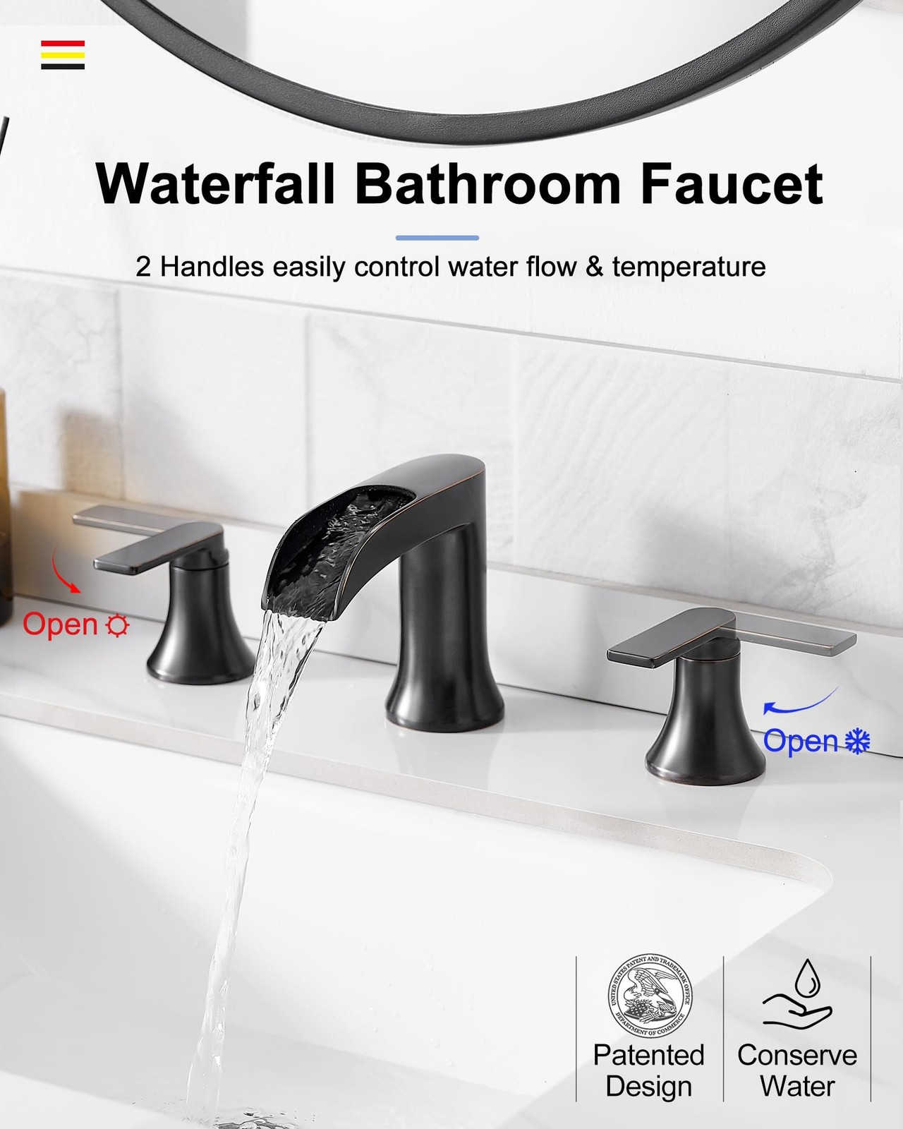 Oil Rubbed Bronze Widespread Waterfall Bathroom Sink Faucet 3 Hole, 4-8 Inch ...