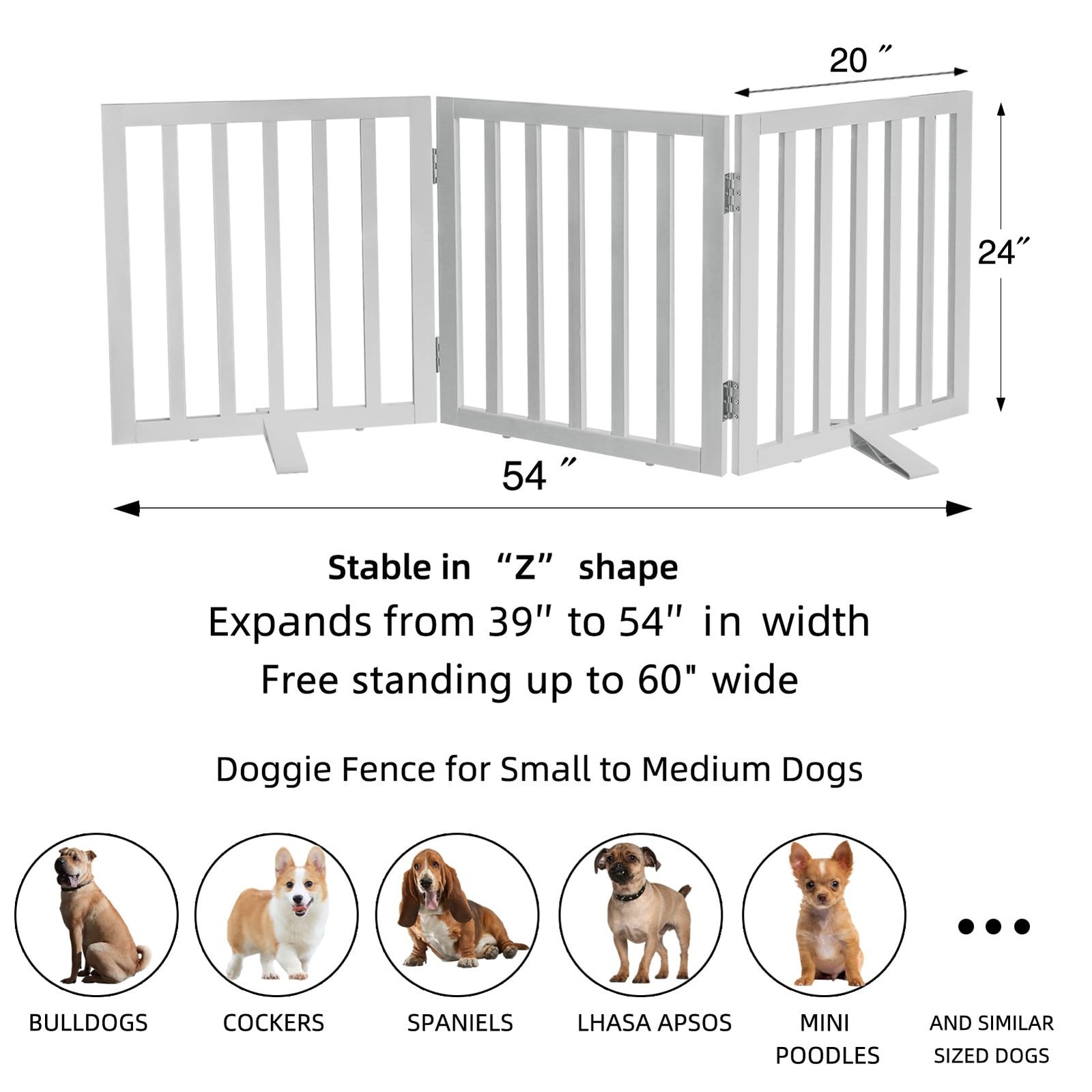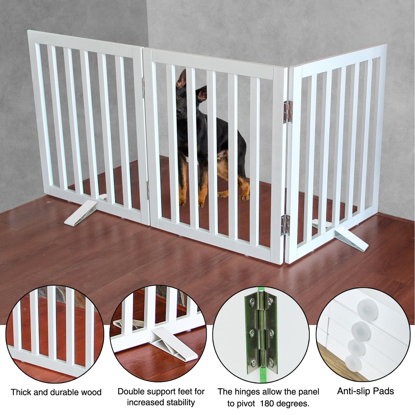 Freestanding Indoor Dog Gate for House Foldable Wood White Puppy Gate for Doo...