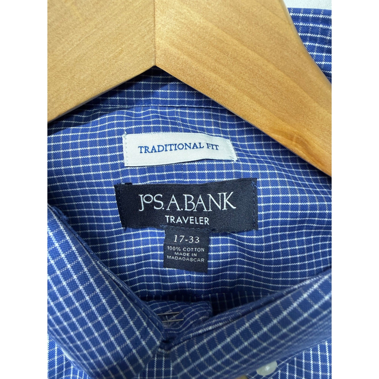как выглядит JOS A BANK travelers Dress Shirt Mens size 17-33 Checked traditional fit NWT фото
