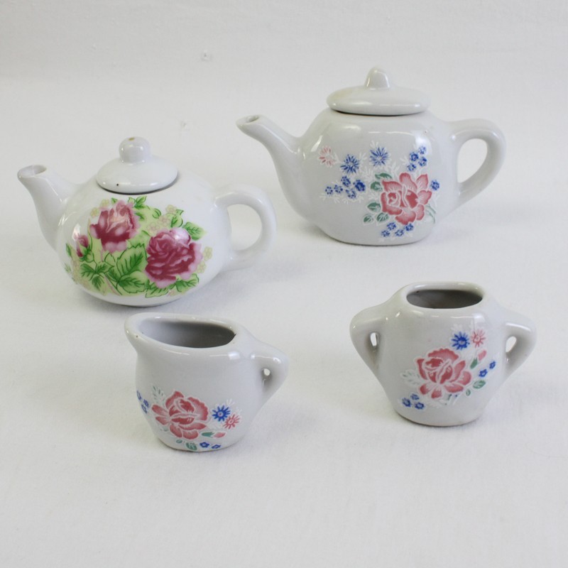 Vintage Child's China Tea Set, 14 Miniature Pcs. with Flowers Design Ting Sing