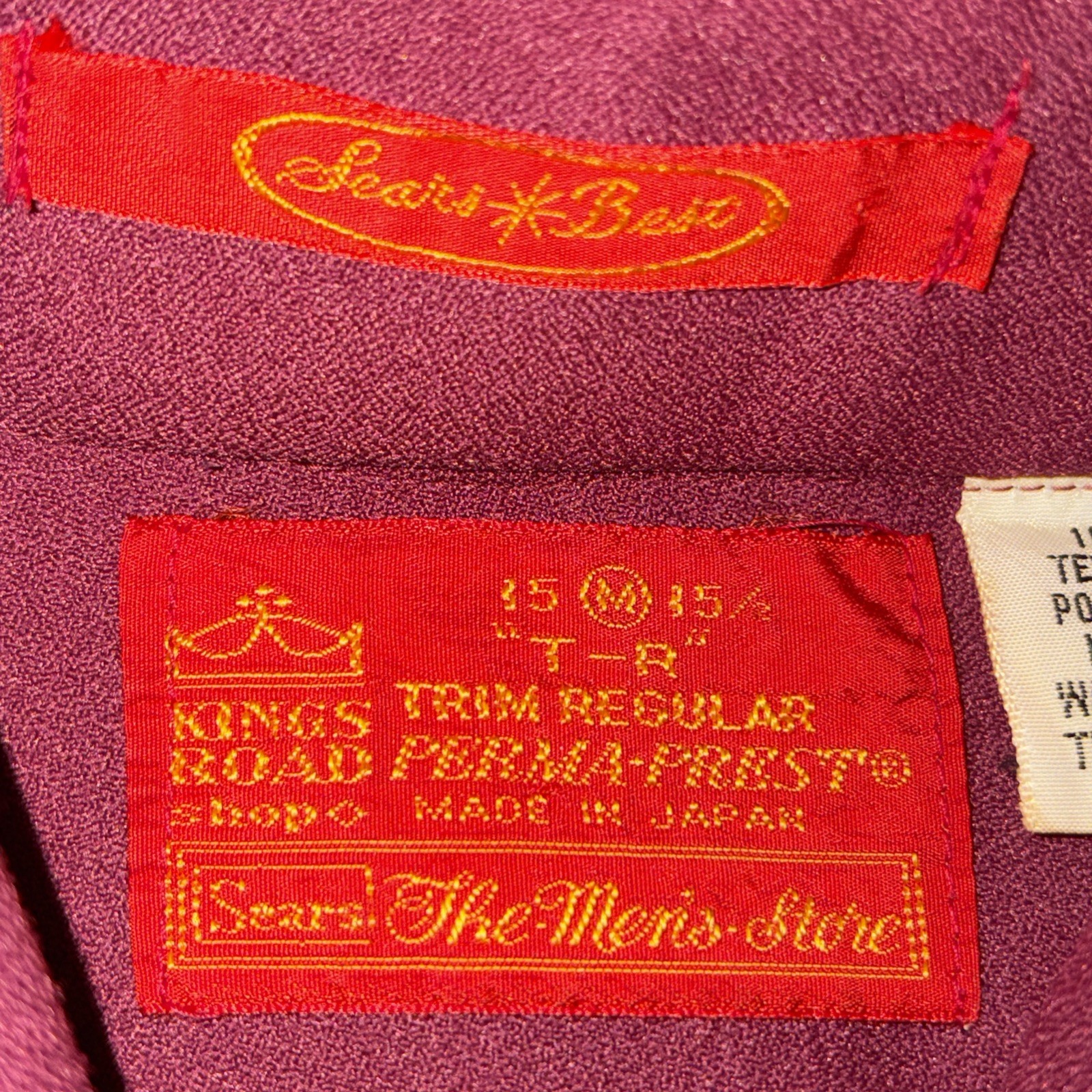 как выглядит Vintage 70s Sears Mens Kings Road Shop Perma Prest Burgundy Shirt M 15-15.5 фото