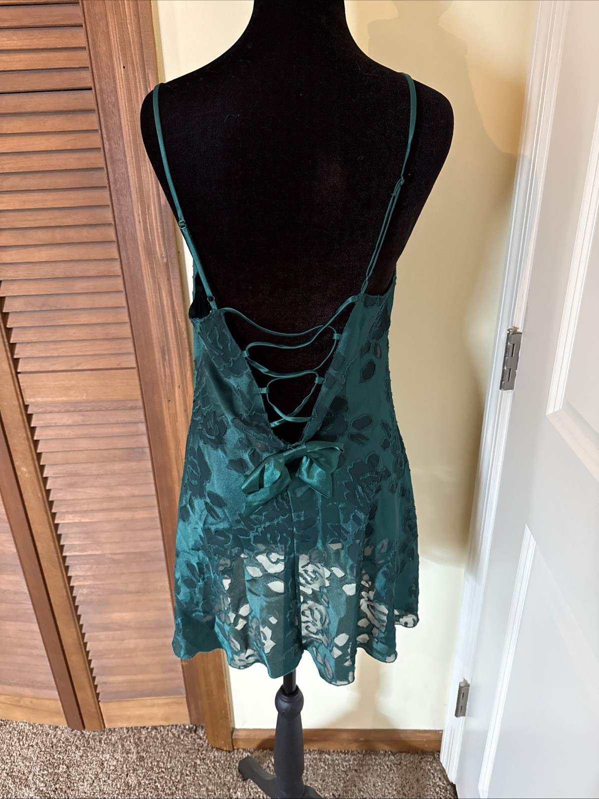 как выглядит Victoria Secret Vintage Gold Label Green Slip Dress Sheer Floral Medium фото