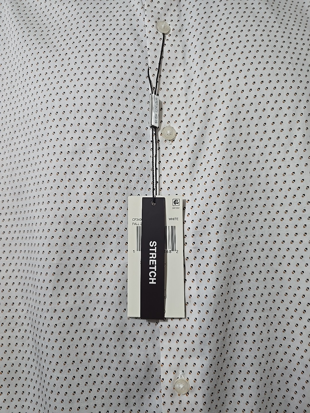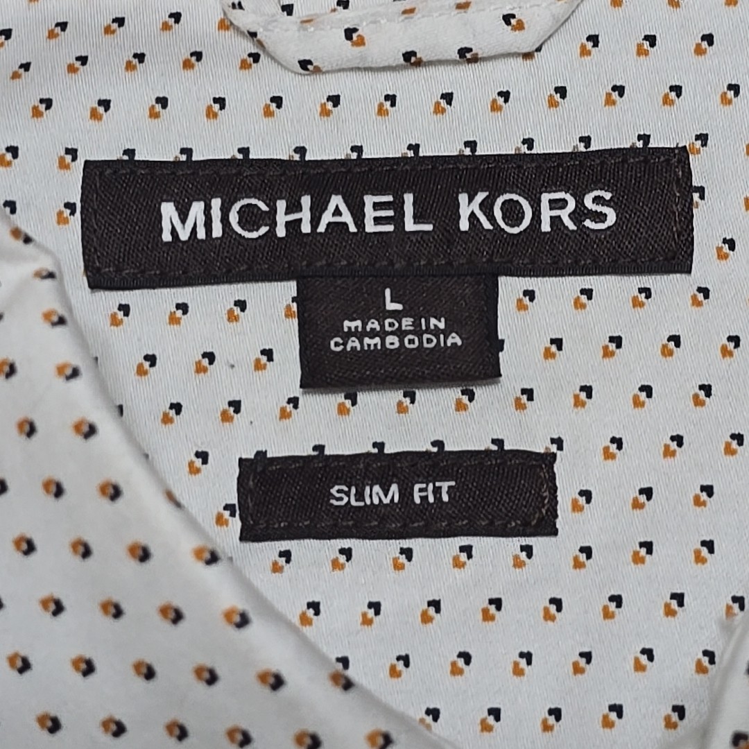 Michael Kors Men's Slim Fit Stretch Dress Shirt White Blue Geometric Print NWT L