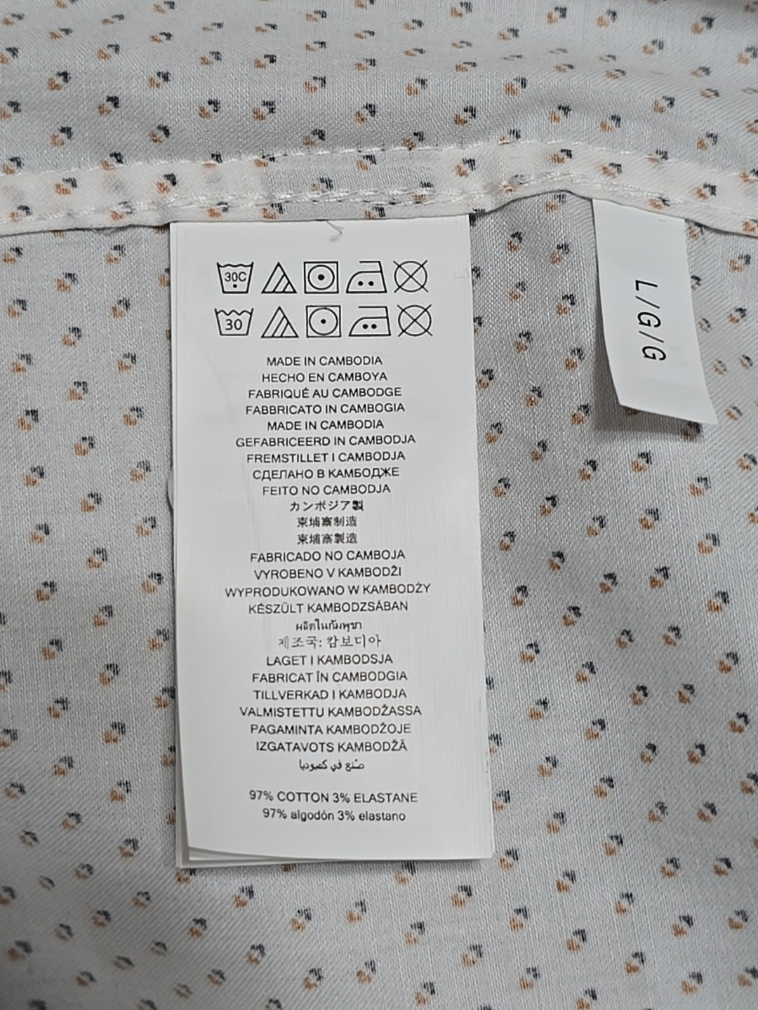 как выглядит Michael Kors Mens Slim Fit Stretch Dress Shirt White Blue Geometric Print NWT L фото