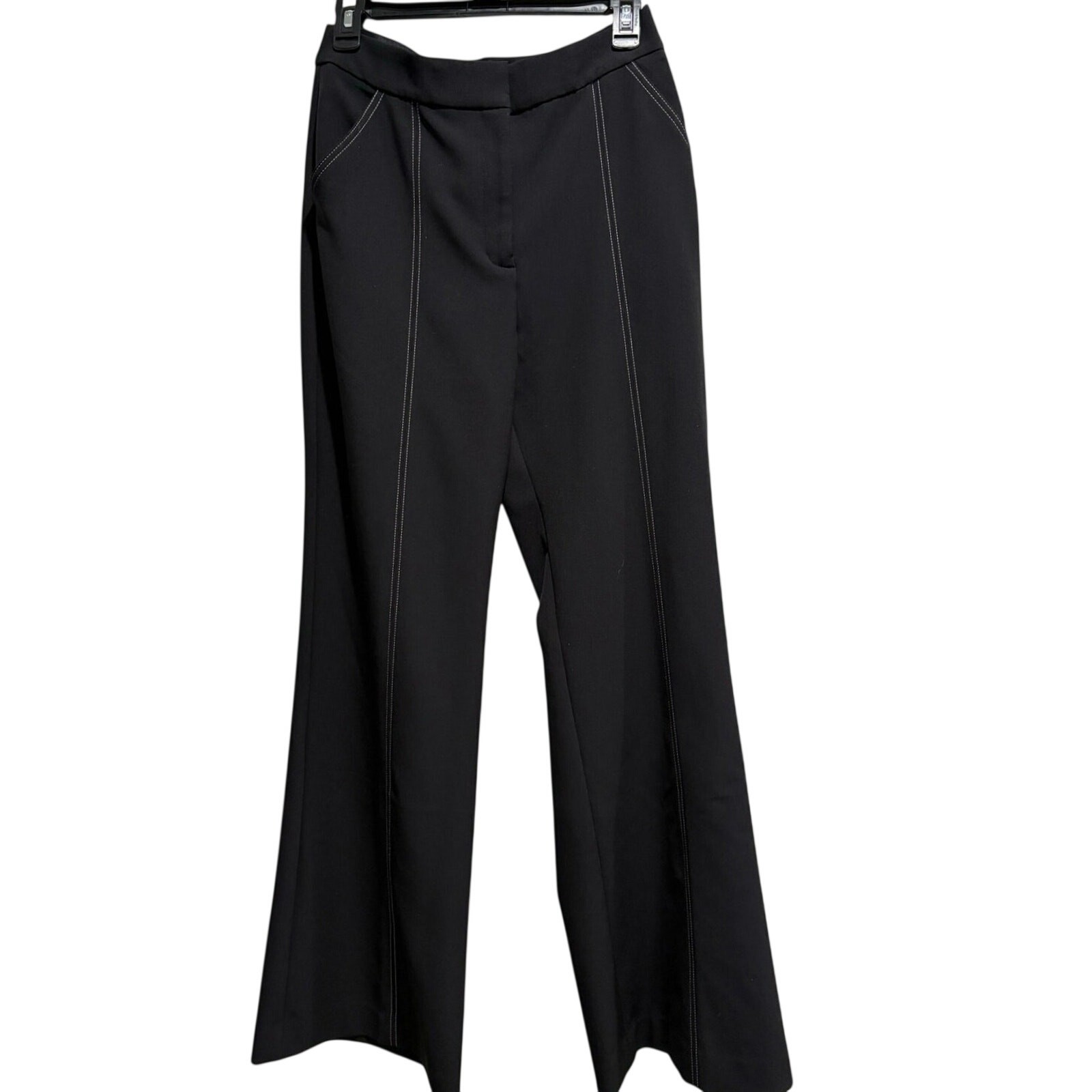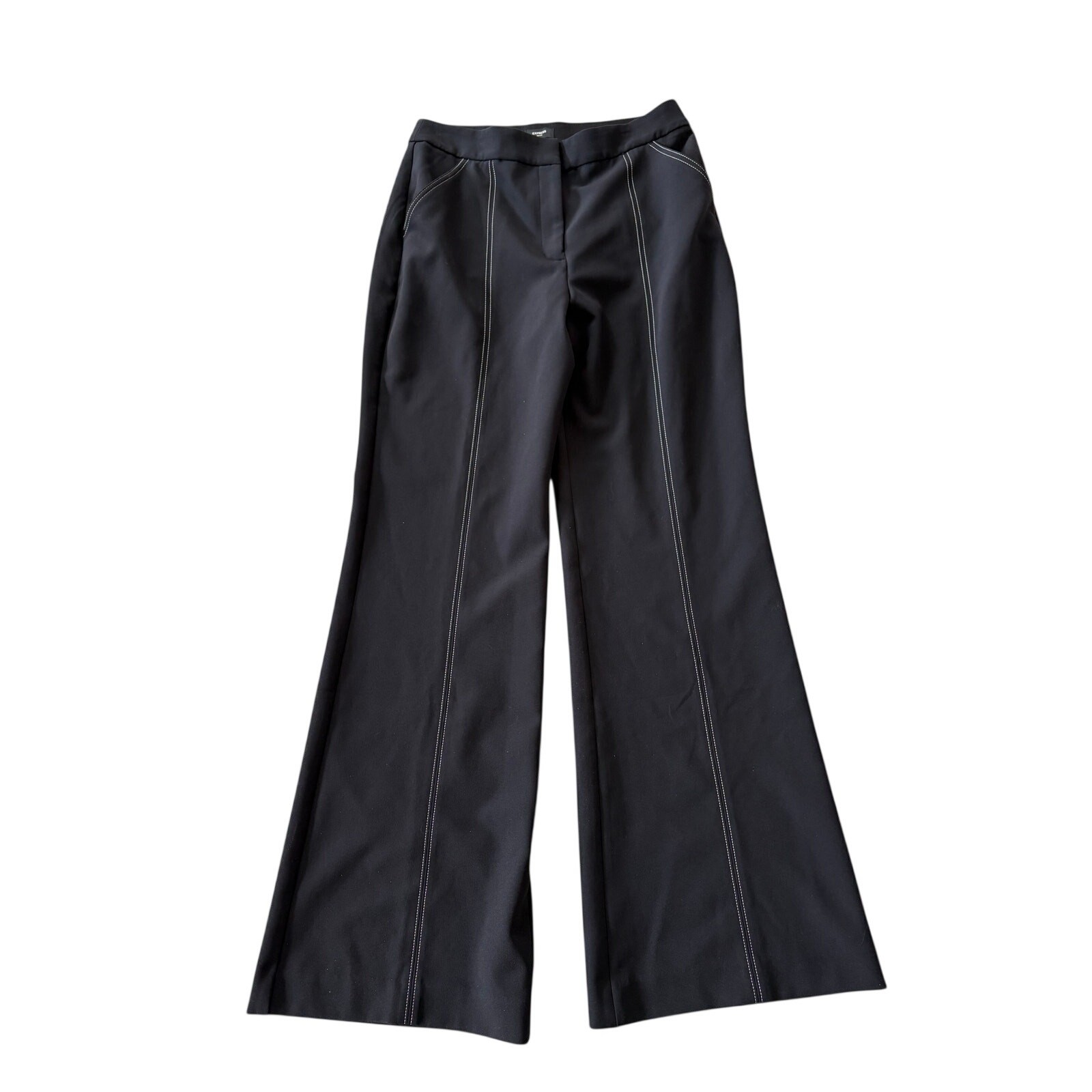 как выглядит Express Editor Studio Stretch Pin-tuck High Waisted Flare Trouser 8R Black NWOT фото