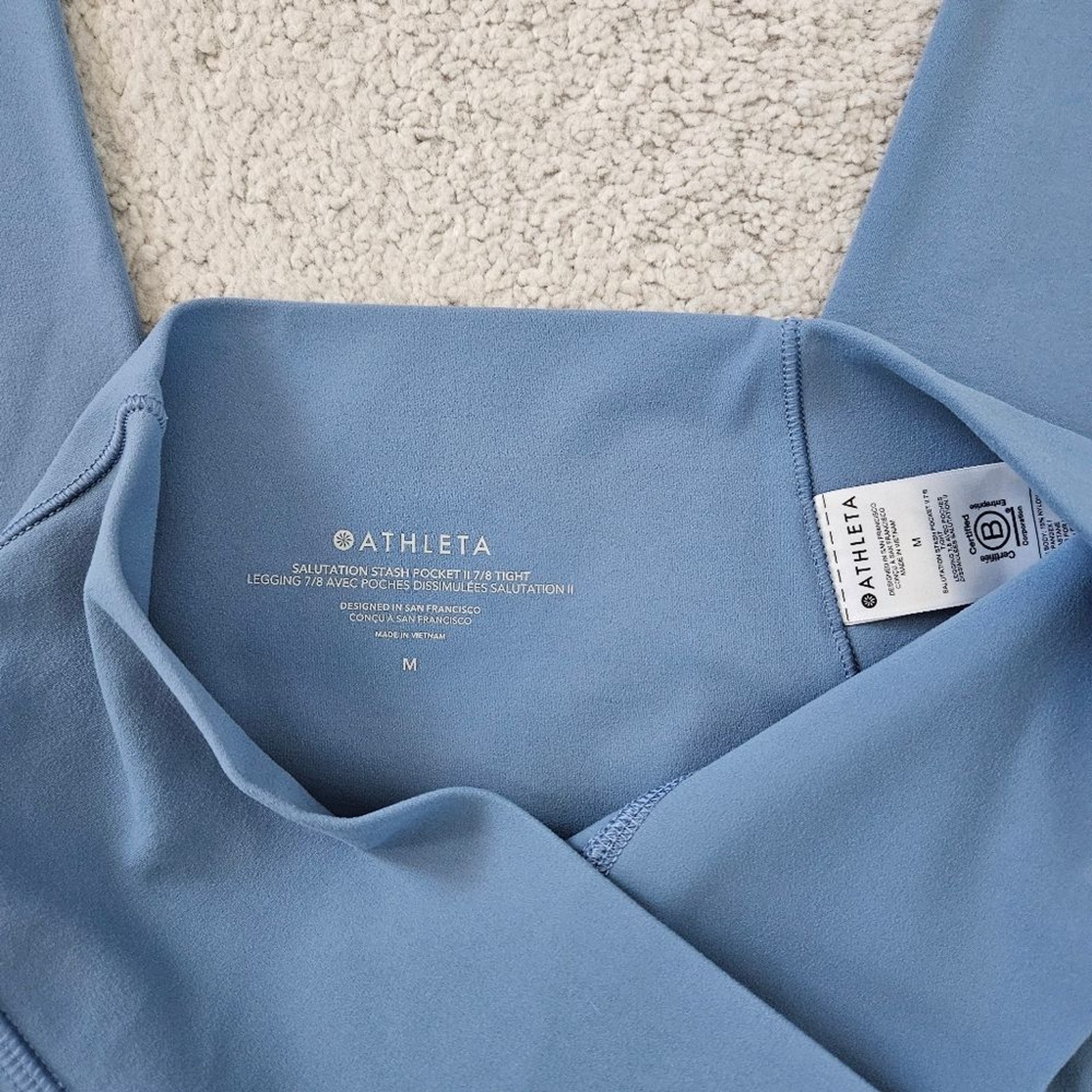 как выглядит Athleta Salutation Stash Pocket II 7/8 Tight Leggings Blue Womens Medium фото