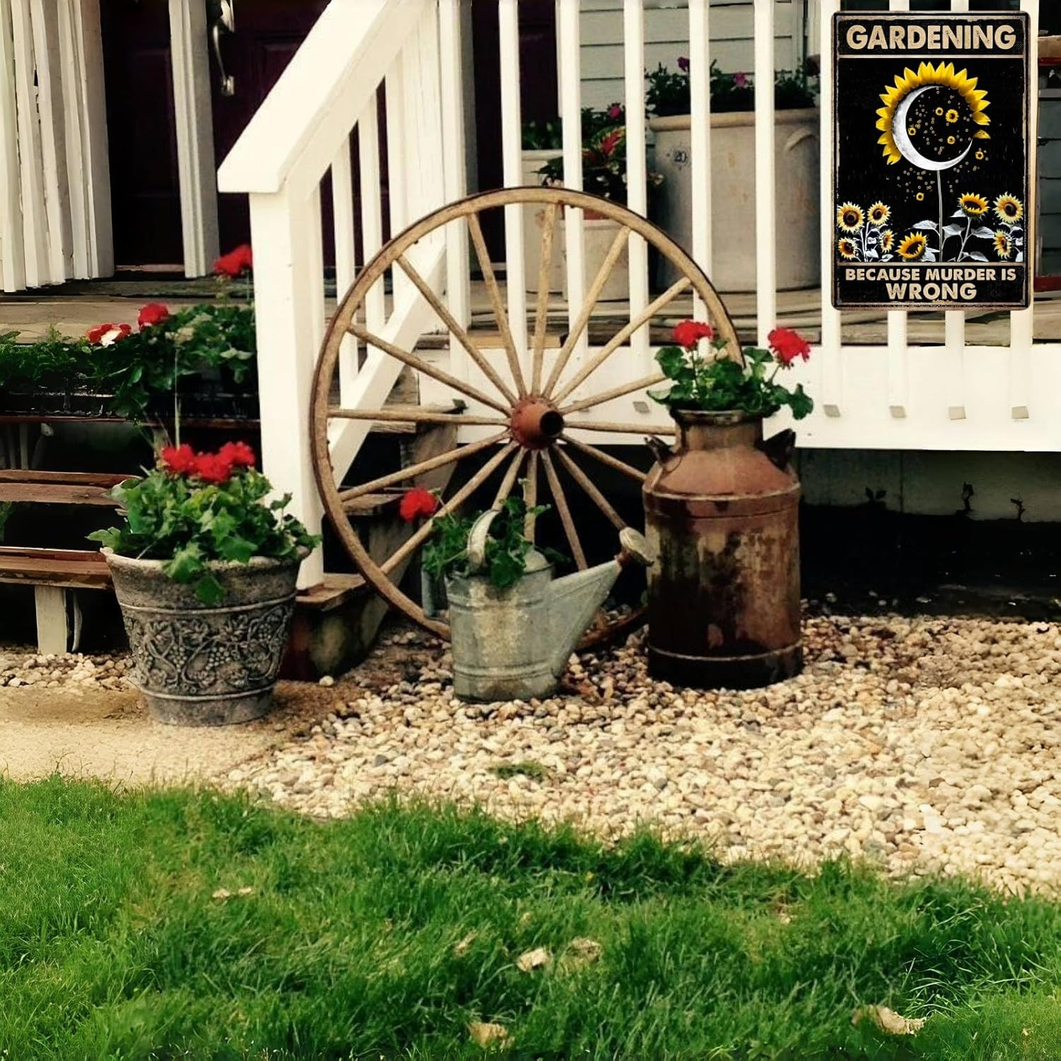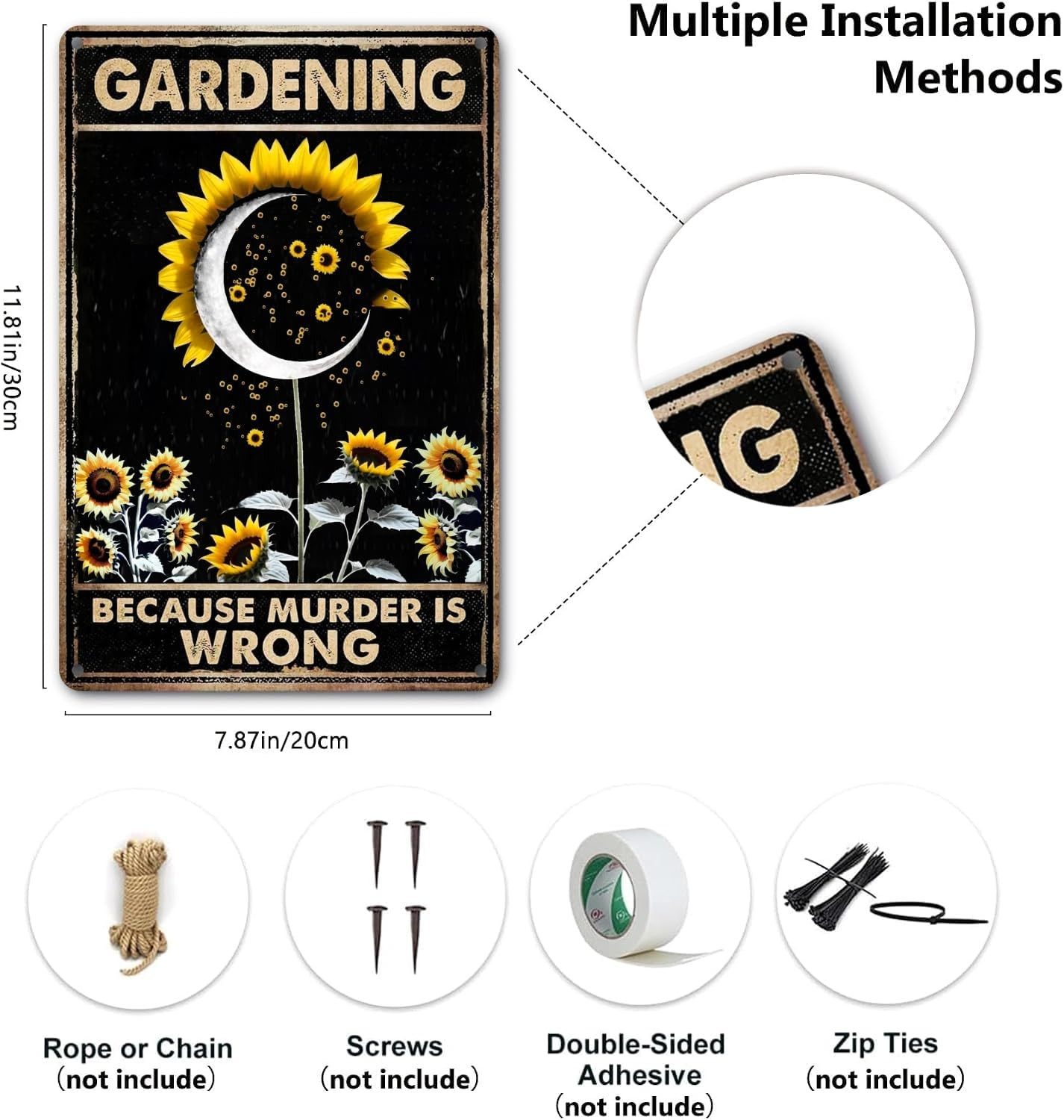как выглядит Gardening Gifts for Women Because Murder Is Wrong Metal Tin Signs Funny Garden S фото