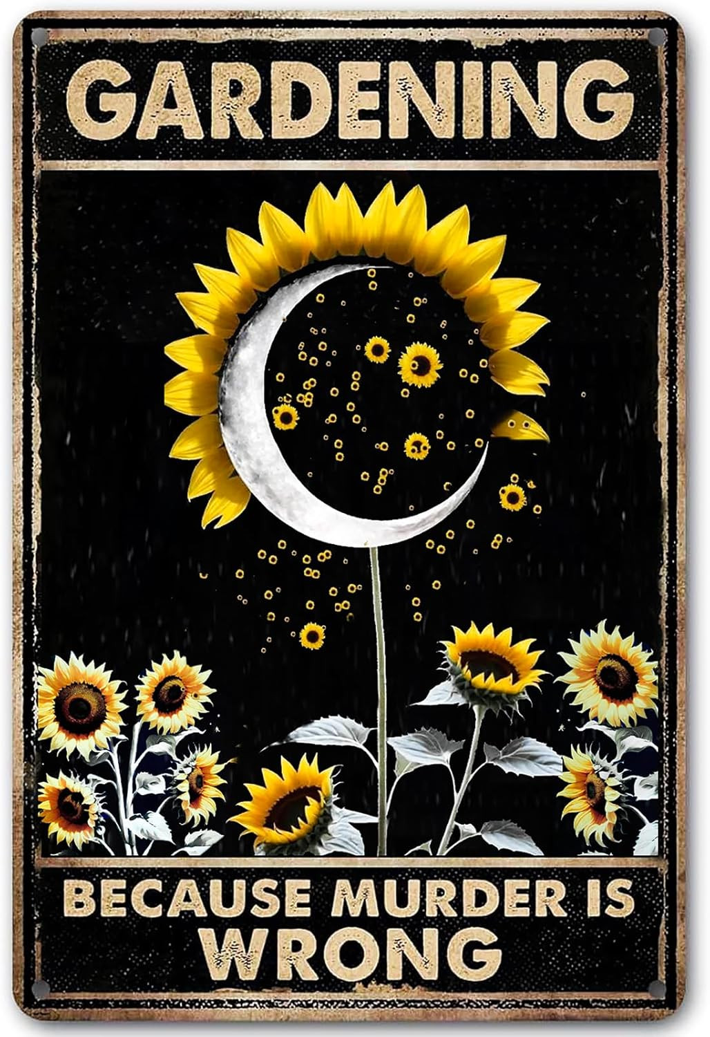 Gardening Gifts for Women Because Murder Is Wrong Metal Tin Signs Funny Garden S
