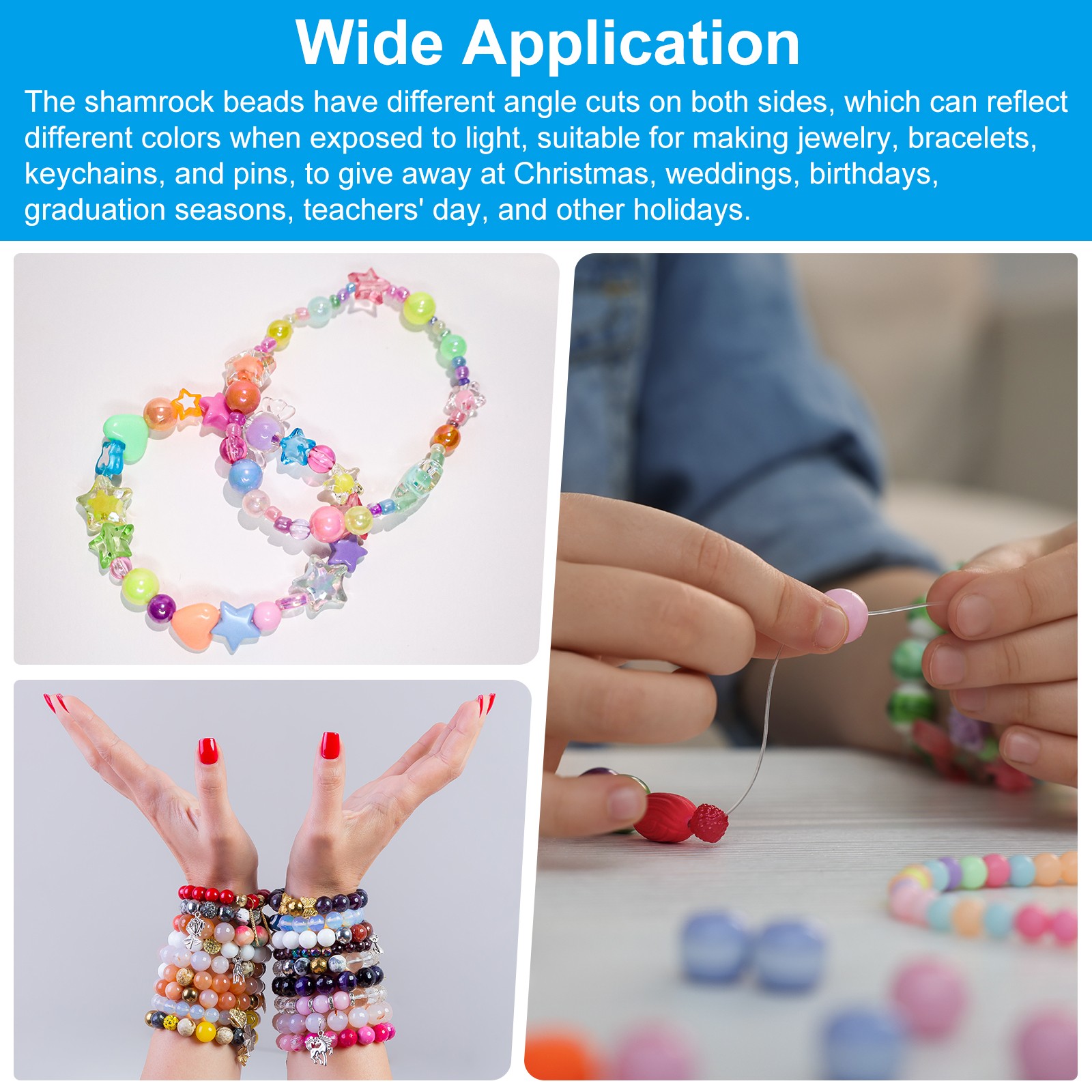 60 Pcs Transparent Shamrock Beads Jewelry Bracelet Making Supplies, Gray