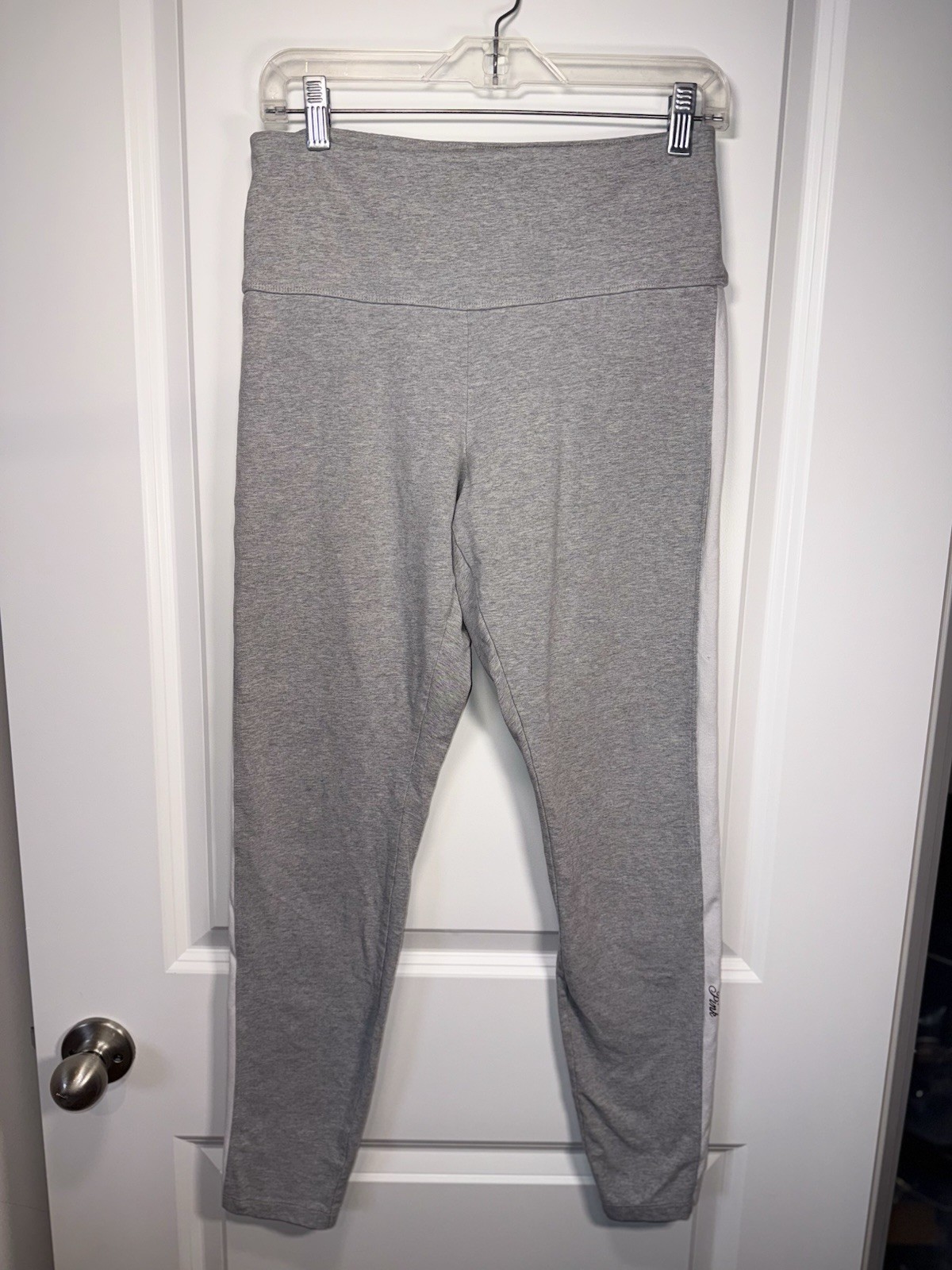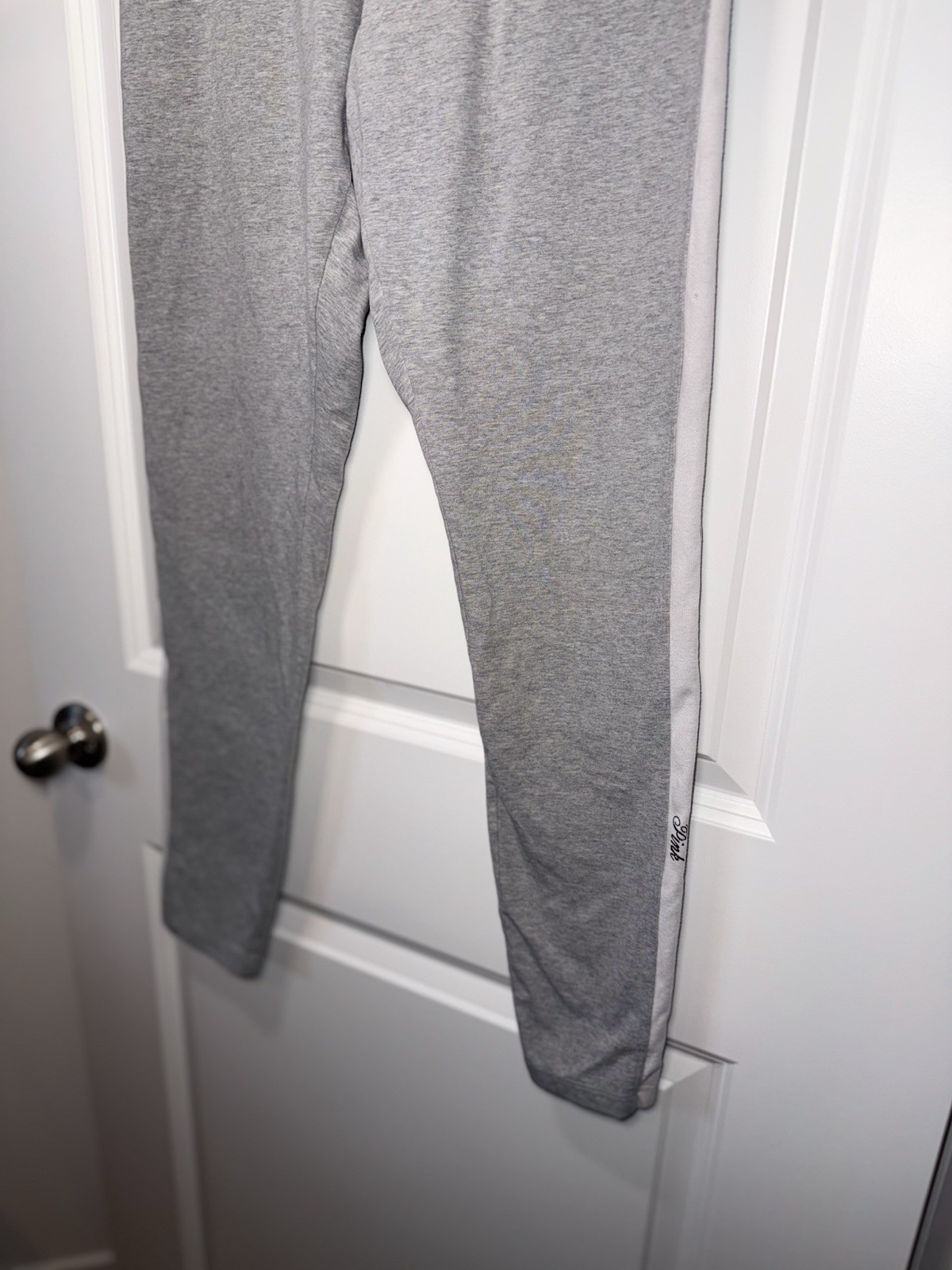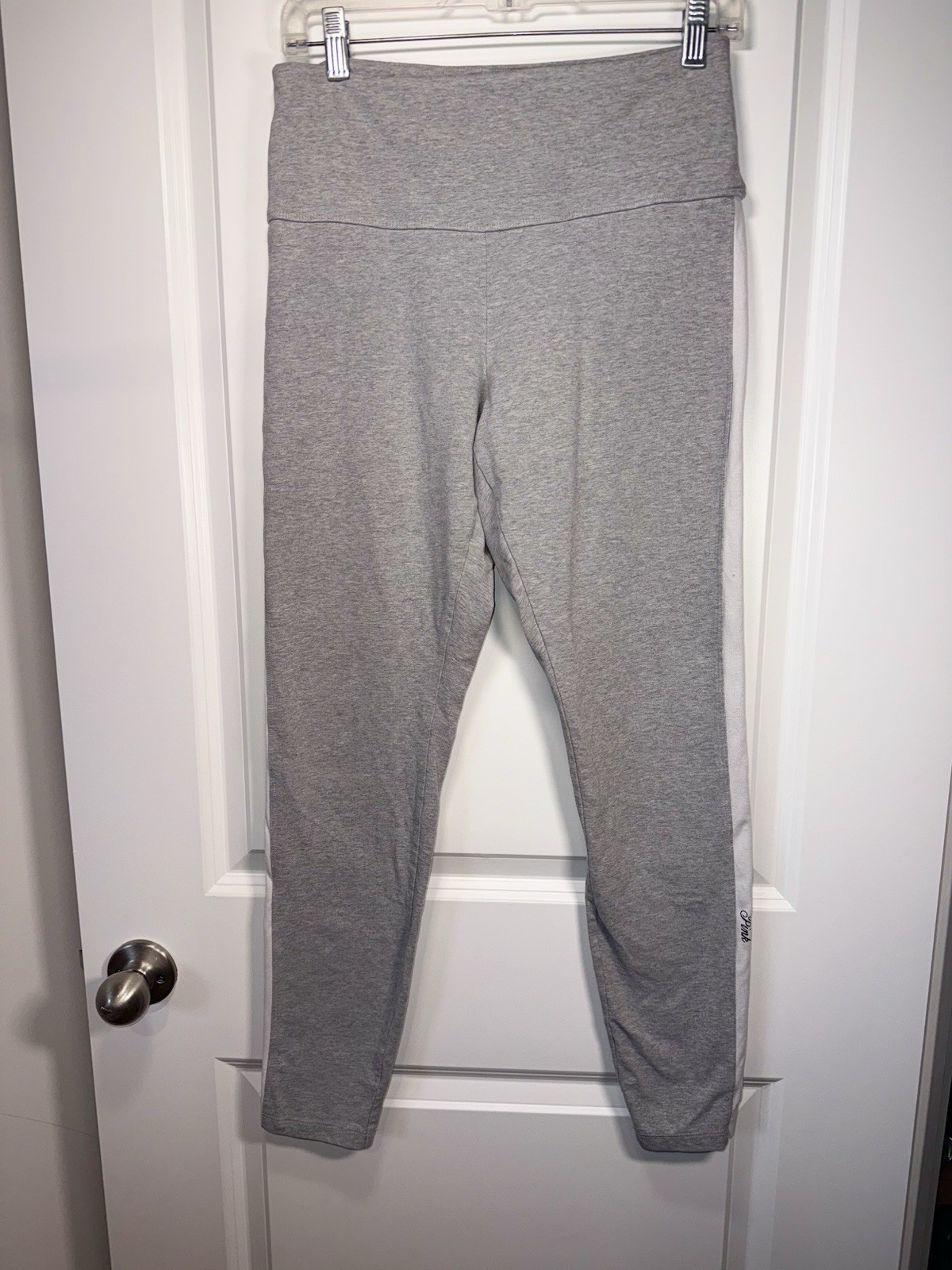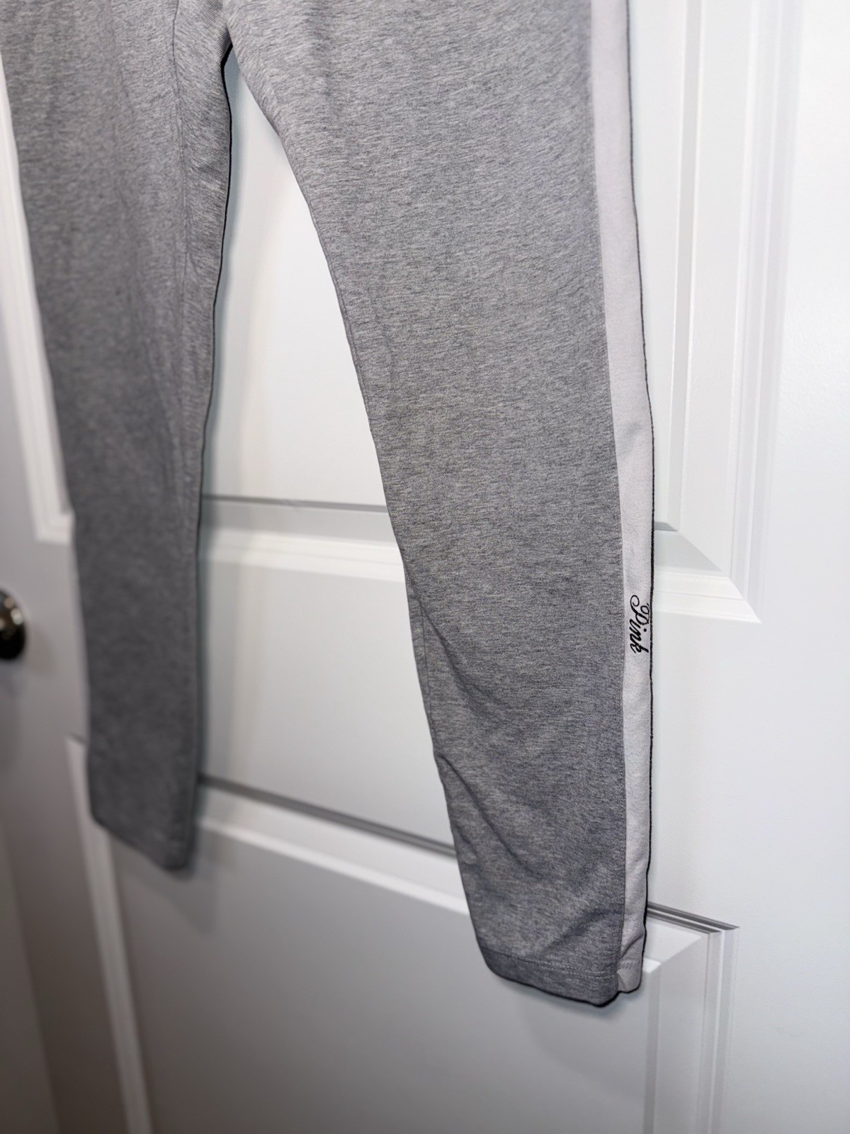PINK Victoria's Secret Ankle Leggings Gray Side Stripe Stretch Logo Women's L