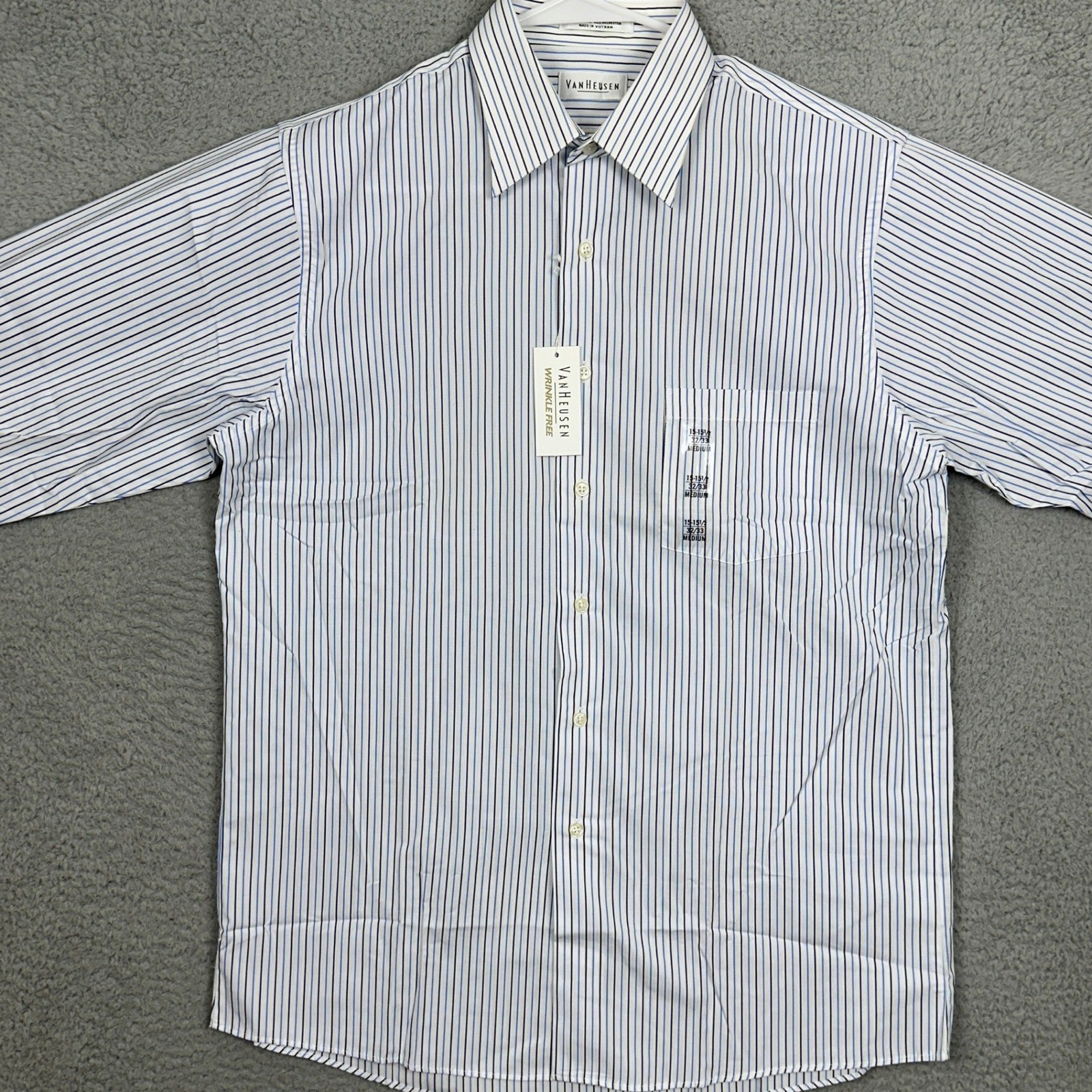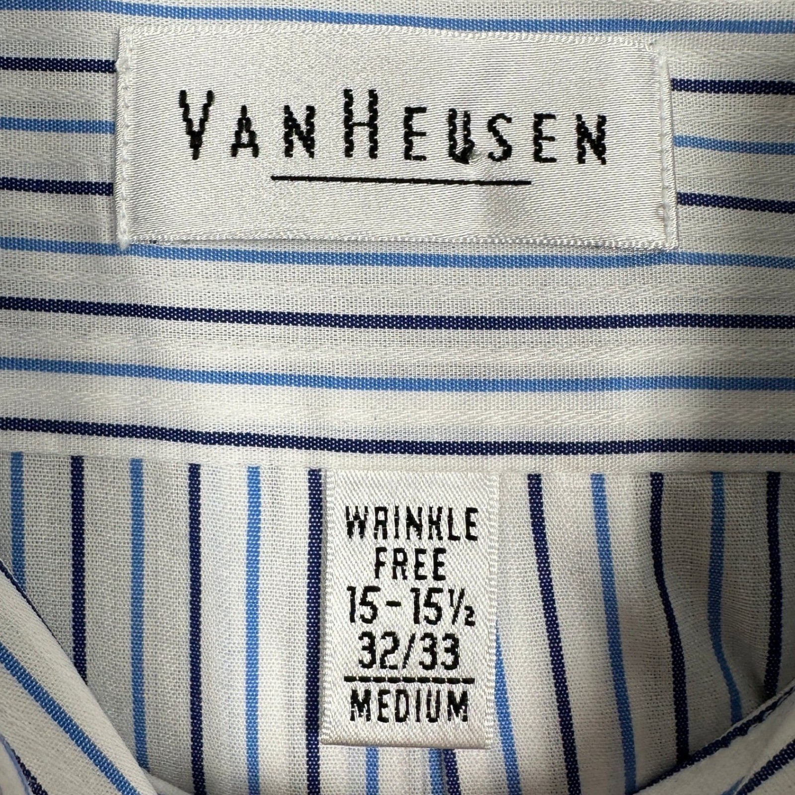 NEW Van Heusen Shirt Men 15-15.5 32-33 Medium Blue White Dress Striped Button Up