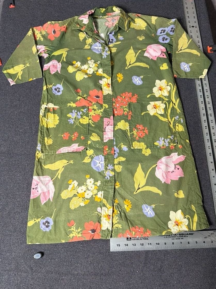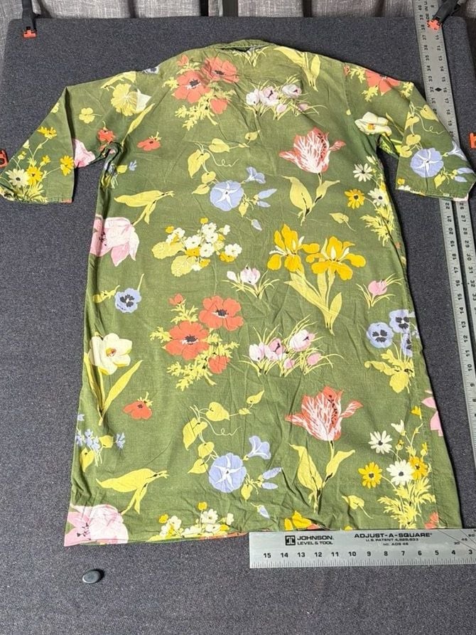 как выглядит Green Floral Button Up Tunic Shirt Dress фото