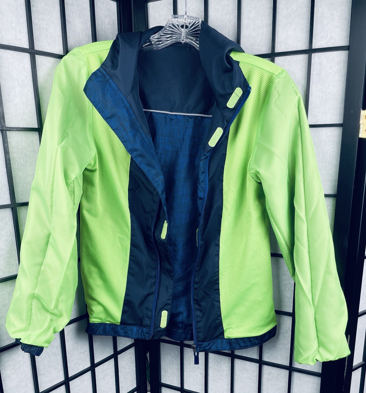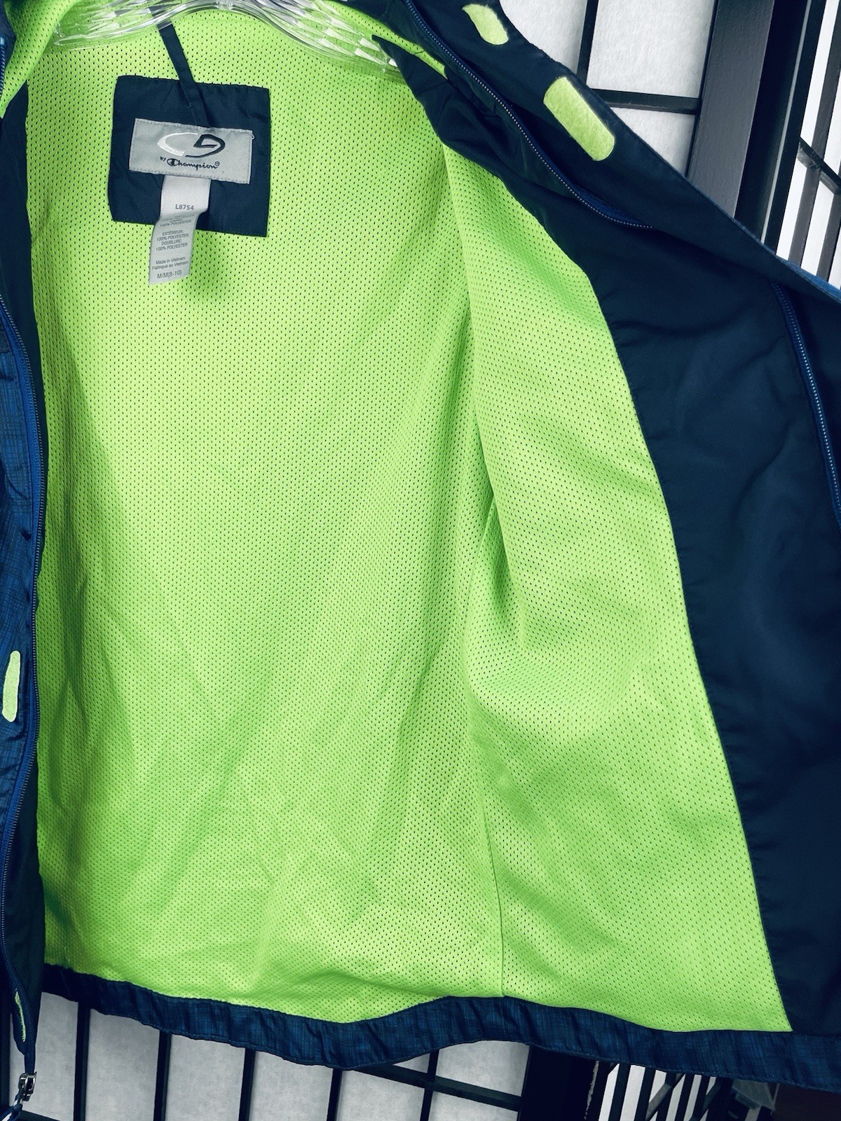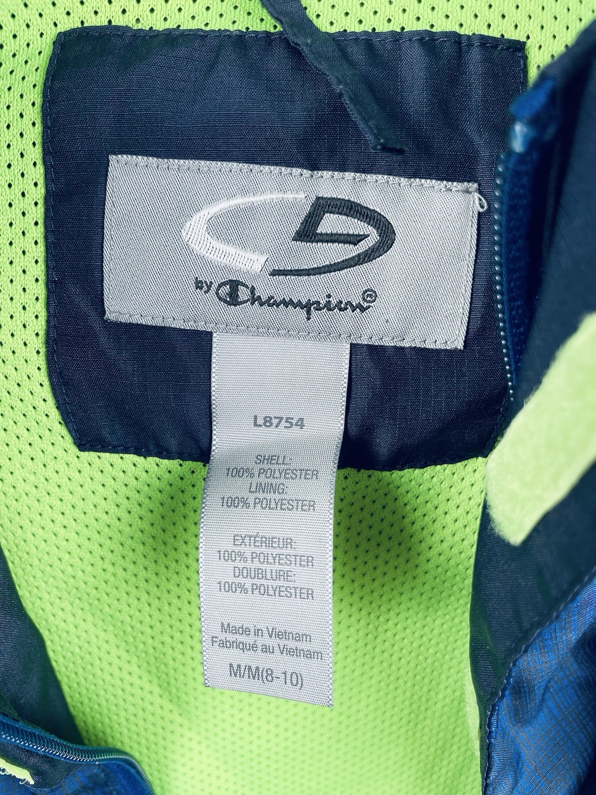 C9 by CHAMPION Boys Blue Windbreaker Jacket Size M Hood, Green Mesh Lining