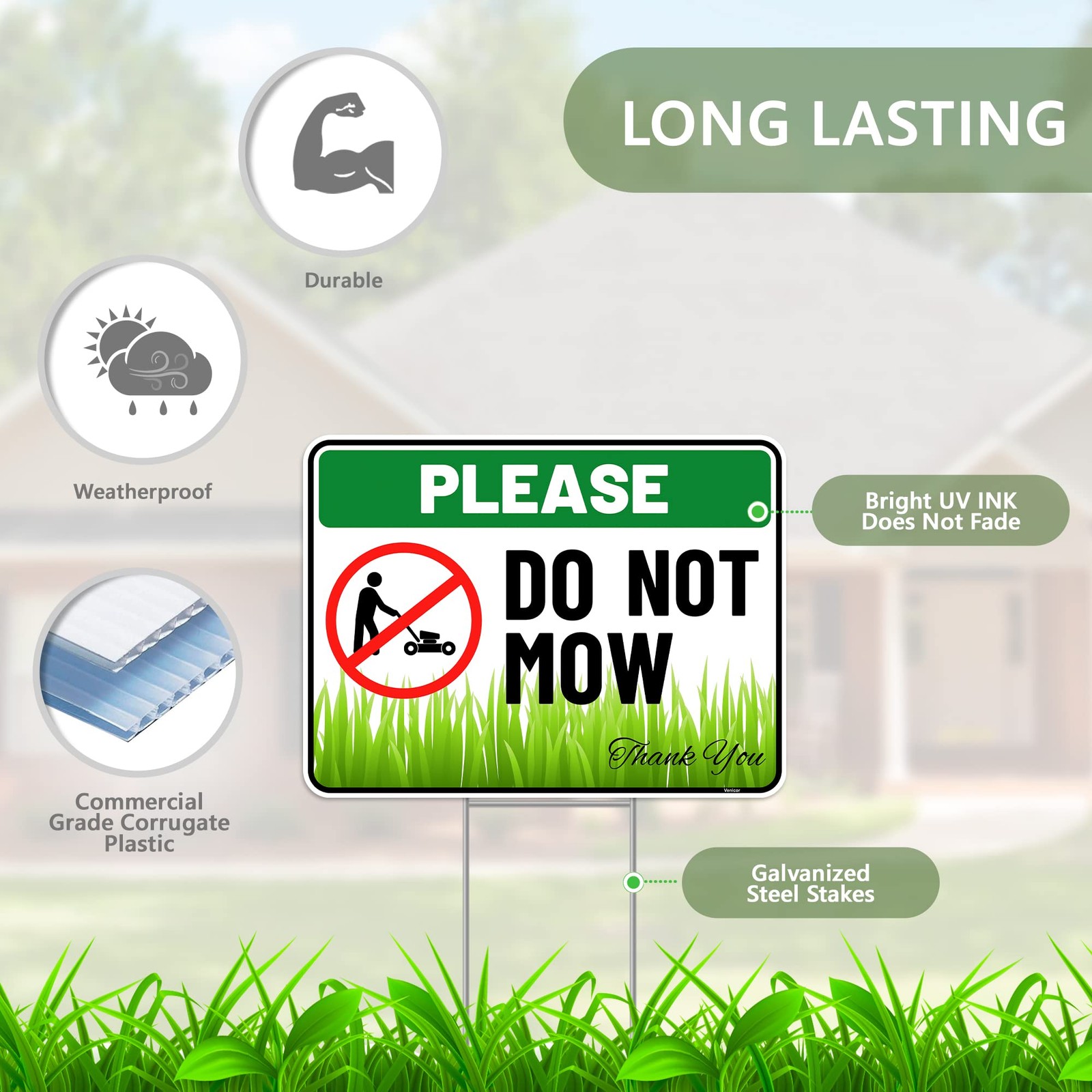 2PC Do Not Mow Sign with Stake 12 Inches by 9 Inches - Corrugated Plastic