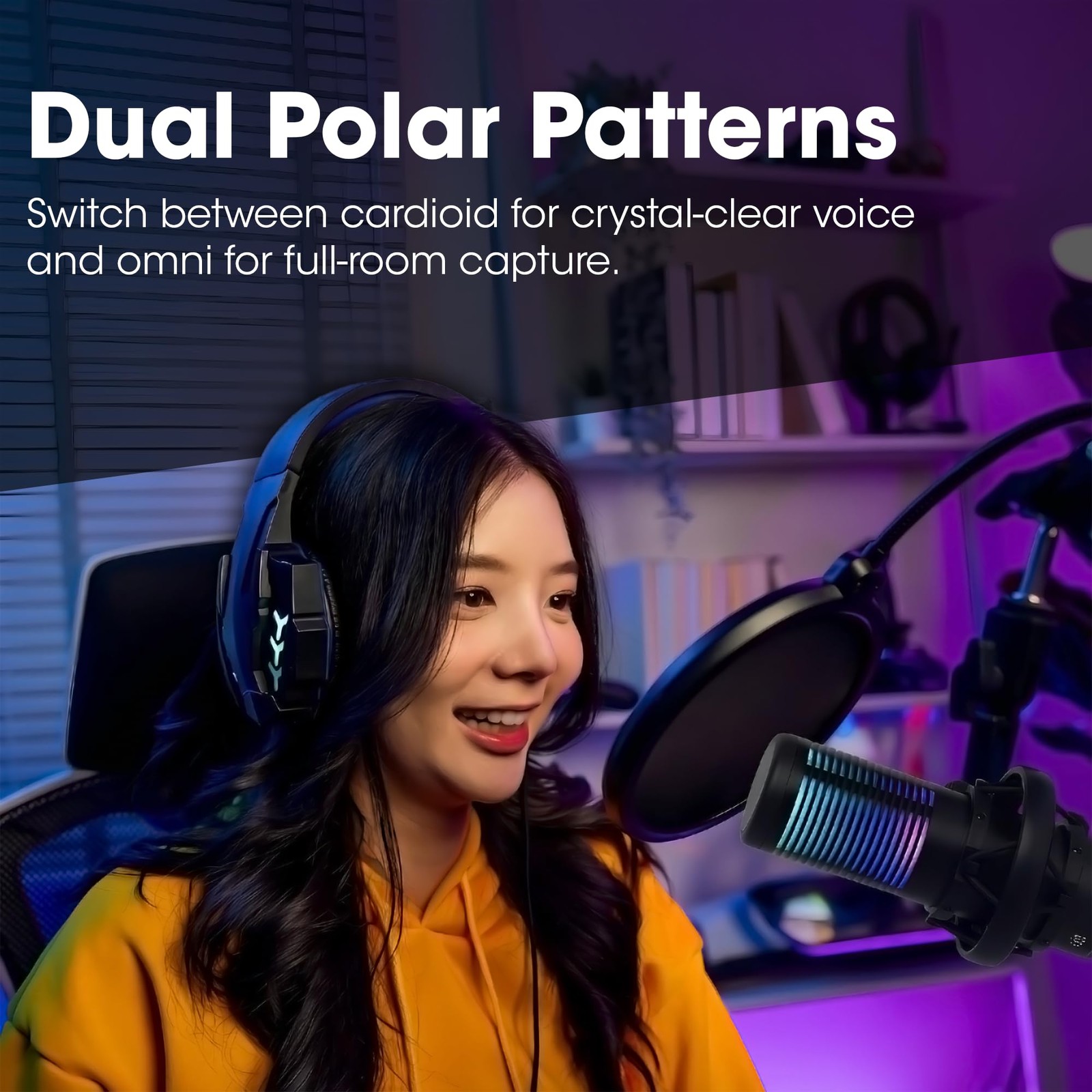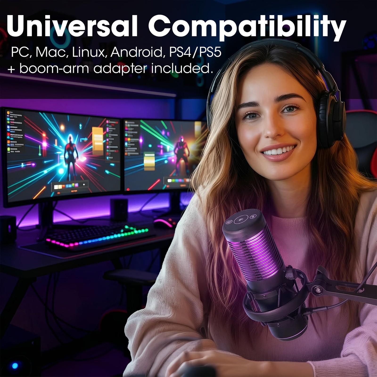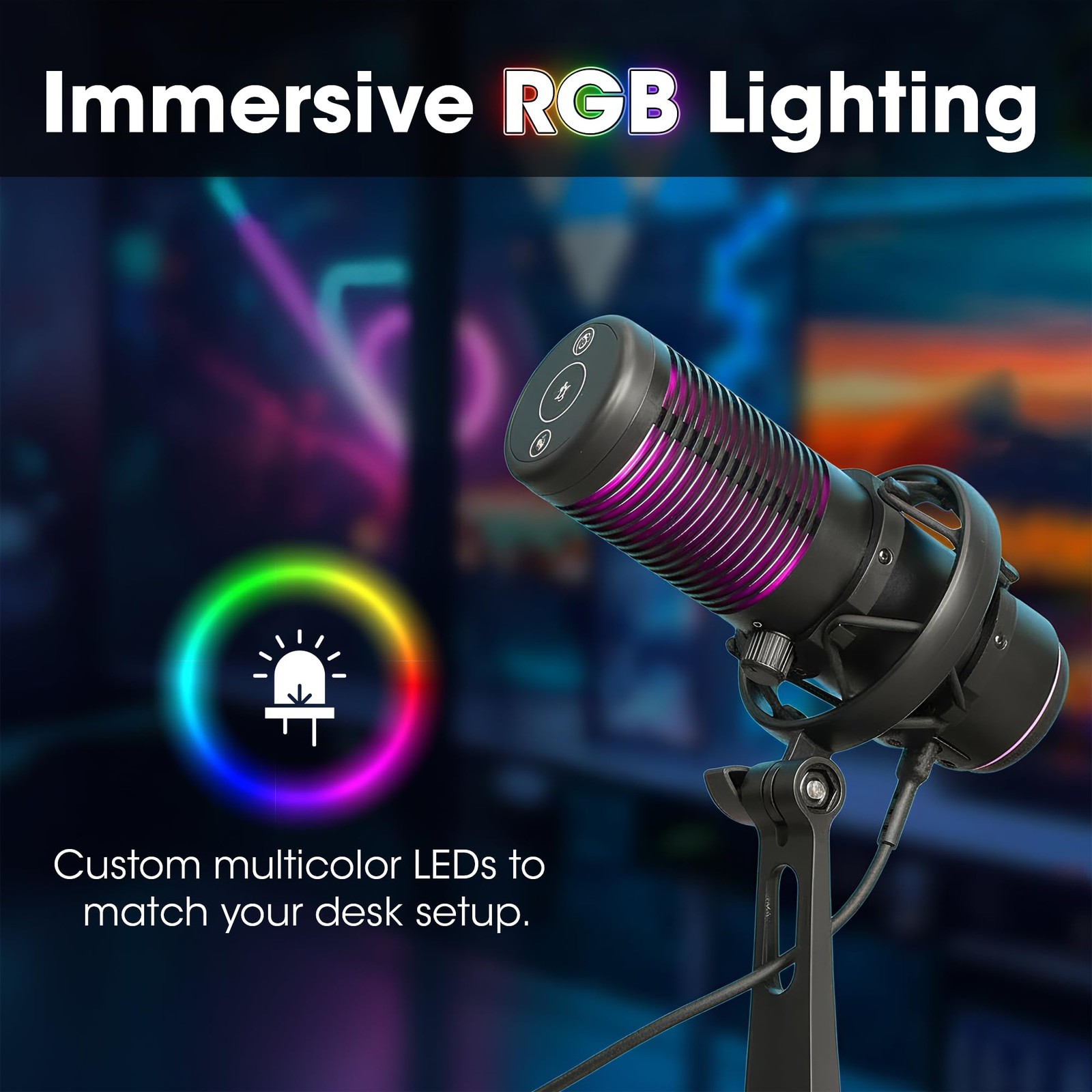 RGB USB Gaming Mic, Noise Cancelling Condenser Microphone for PC, PS4, PS5 an...