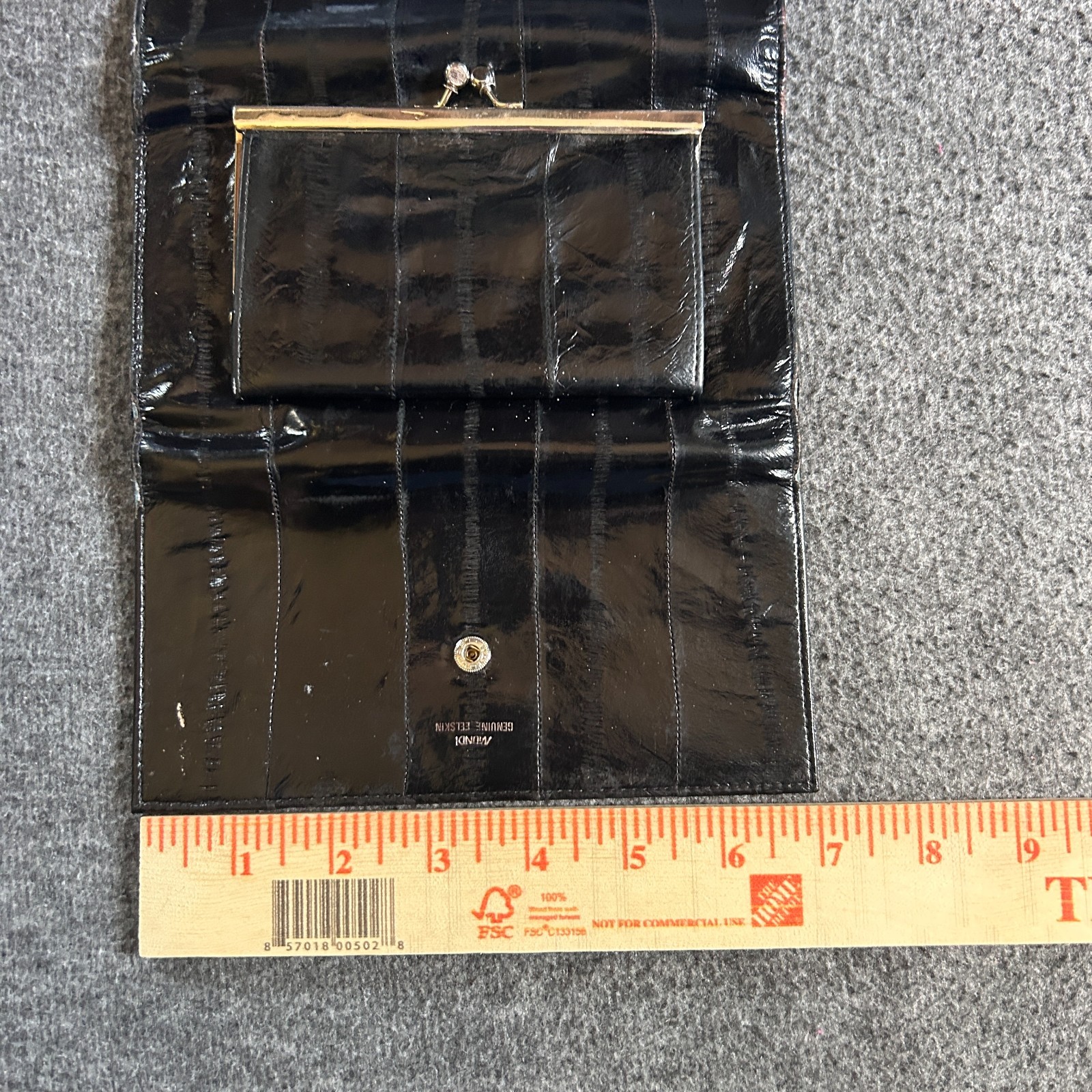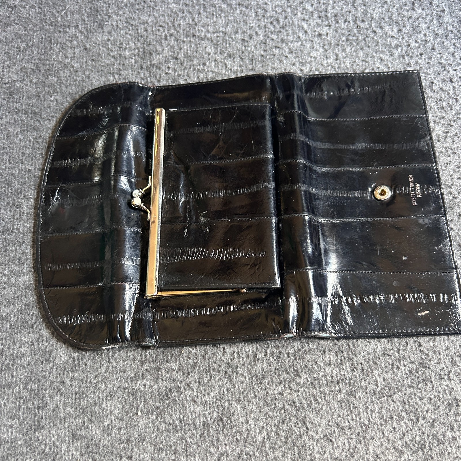 как выглядит Vtg EEL Skin Wallet Womens Black Checkbook Cards Cash Coins Trifold Snap Zip 7x4 фото