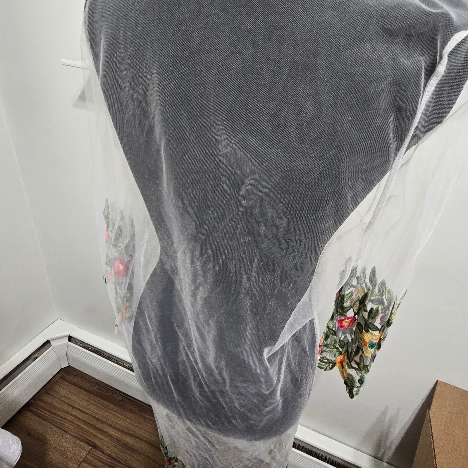 как выглядит Shoreline White Mesh Floral Embroidered Kimono Cardigan Crochet Lace Trim S/M фото