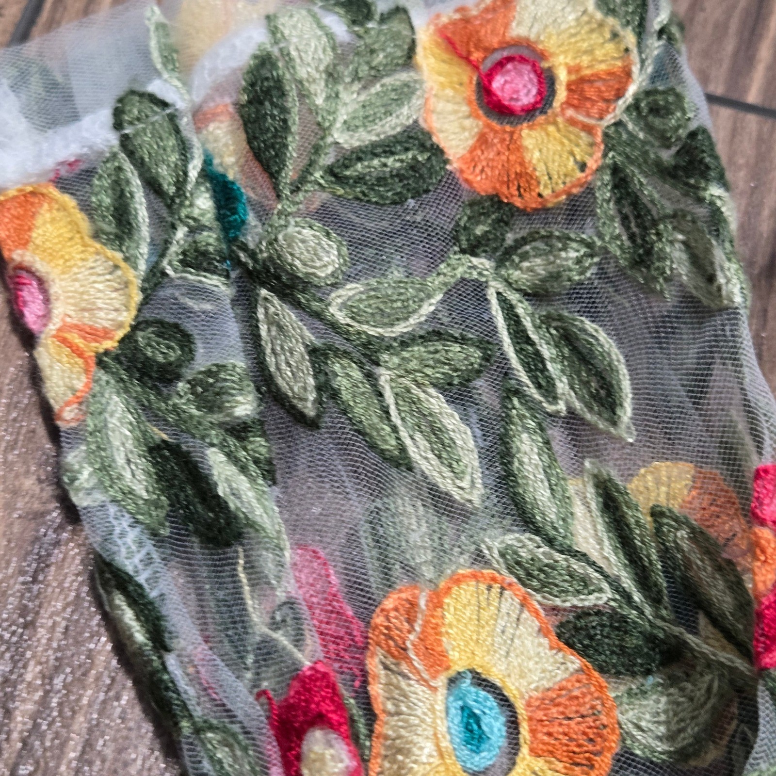 Shoreline White Mesh Floral Embroidered Kimono Cardigan Crochet Lace Trim S/M