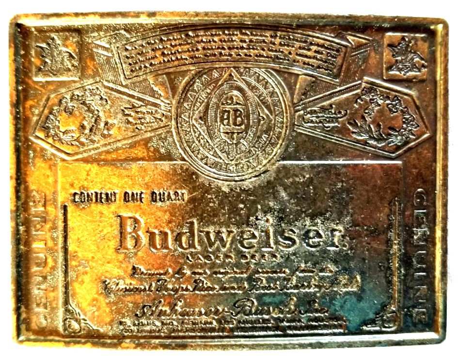 VTG Genuine Budweiser King of Beers Advertising Brass Belt Buckle
