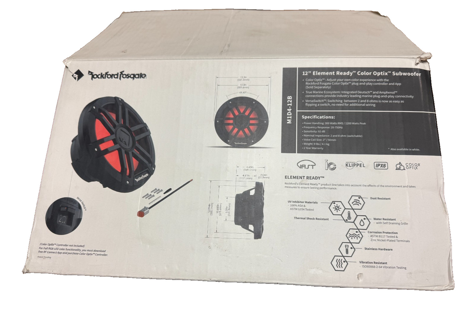 Rockford Fosgate M1D4-12B 12'' DVC 4 Color Optix Marine Subwoofer, Black Grille